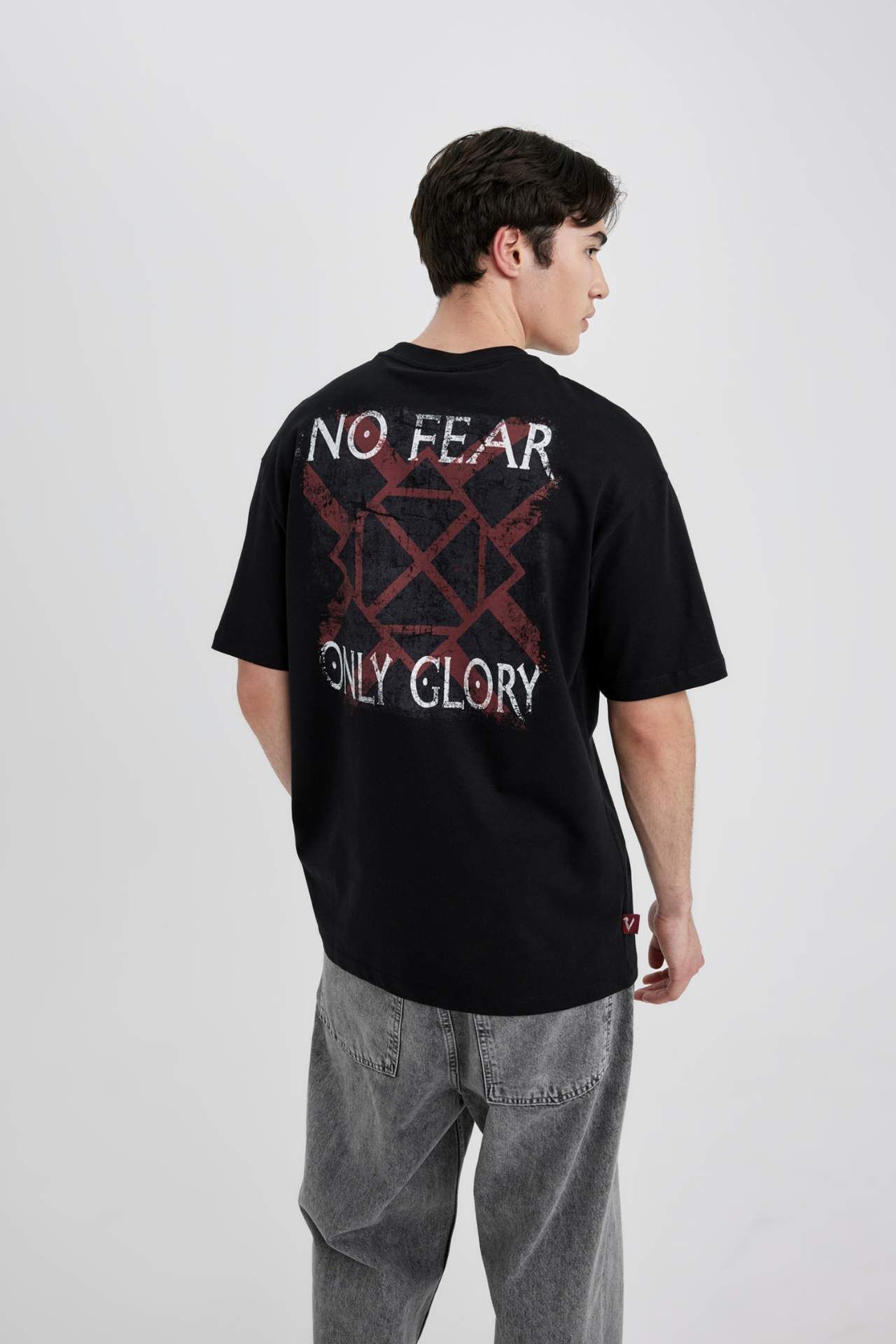 DeFactoFit Vikings Valhalla Comfort Fit Bisiklet Yaka Baskılı Kısa Kollu Tişört