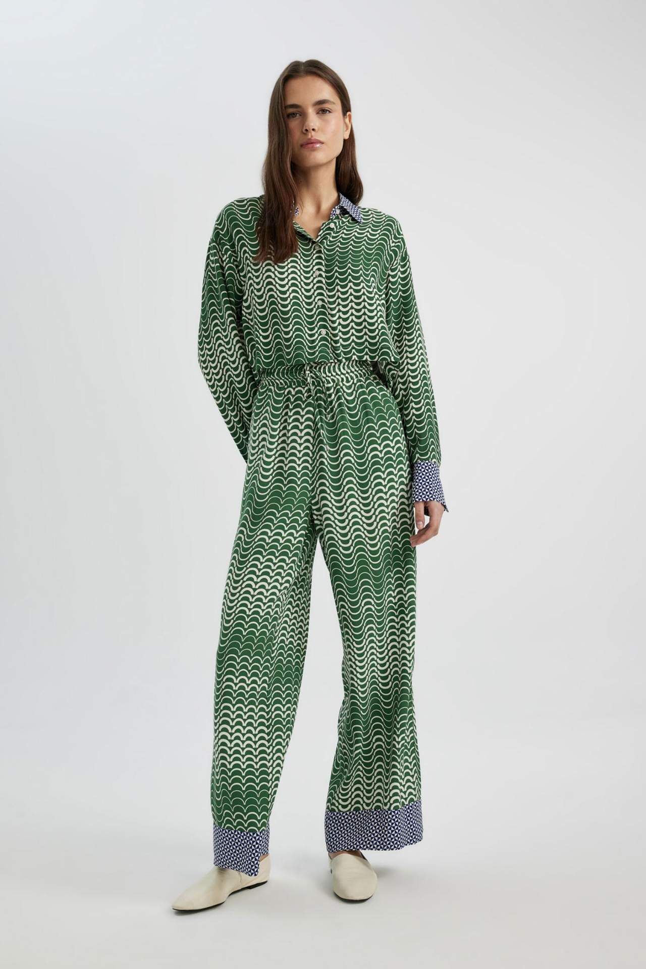 DeFactoFit Wide Leg Desenli Yüksek Bel Geniş Paça Uzun Boy Maroken Pantolon
