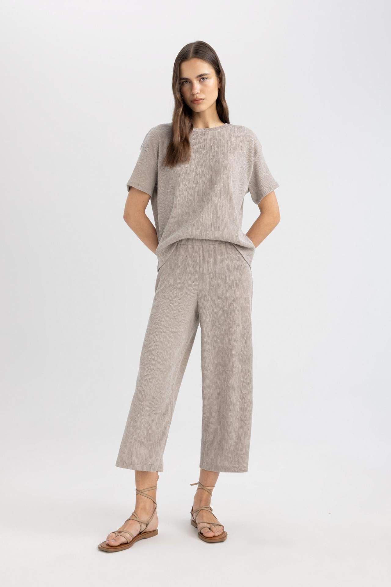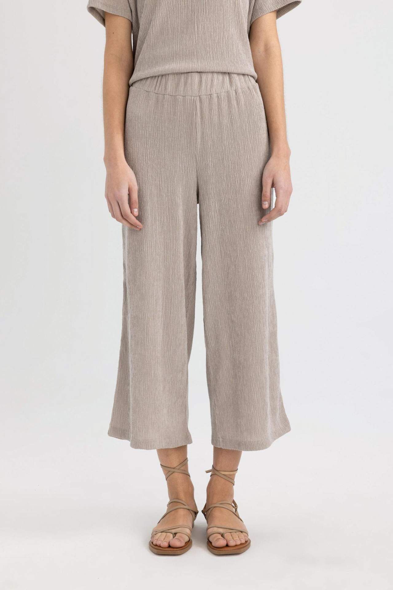 DeFactoFit Wide Leg Normal Bel Düz Paça Midi Bürümcük Pantolon C4329AX24SPGR302