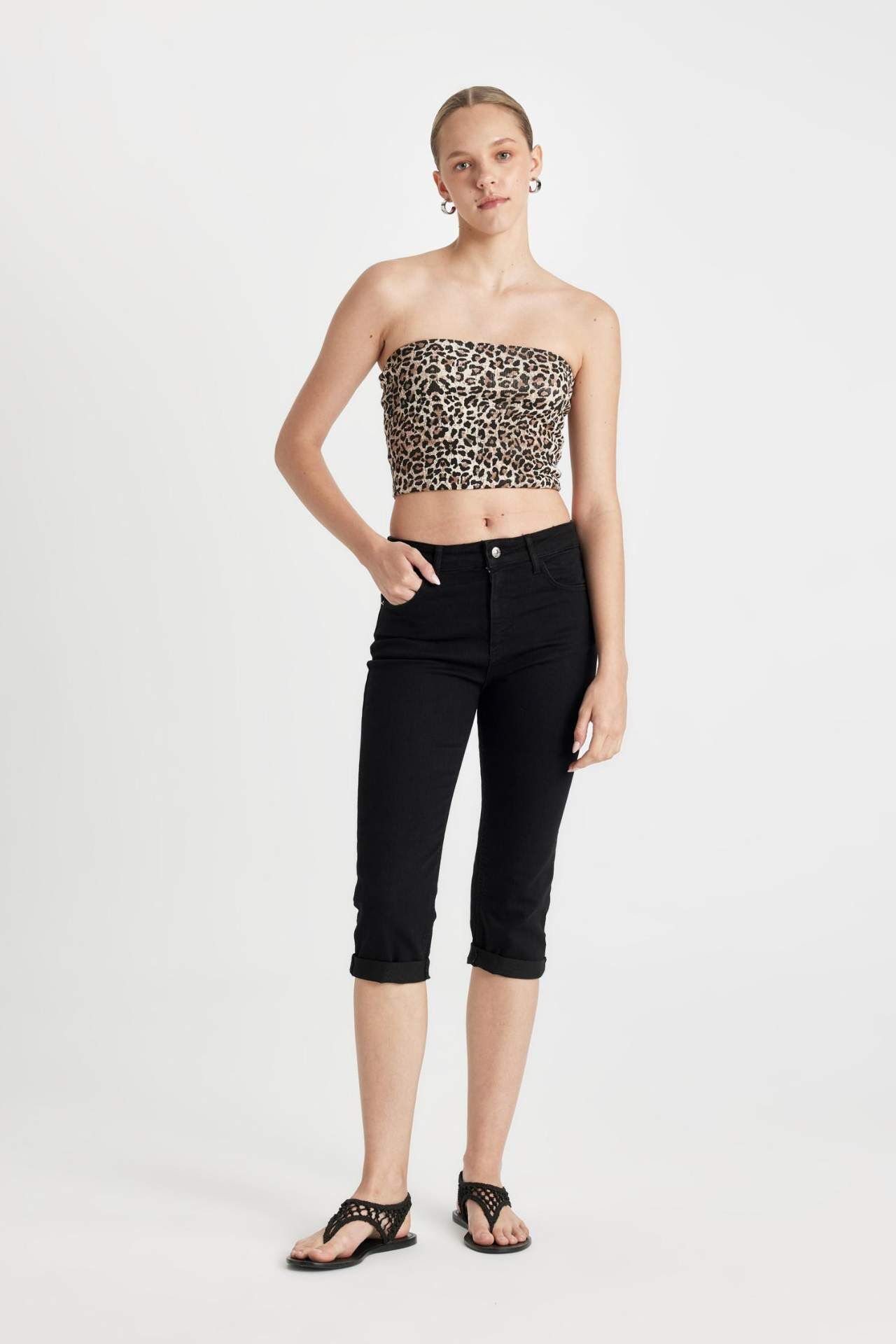 DeFactoFit Yüksek Bel Jean Kapri