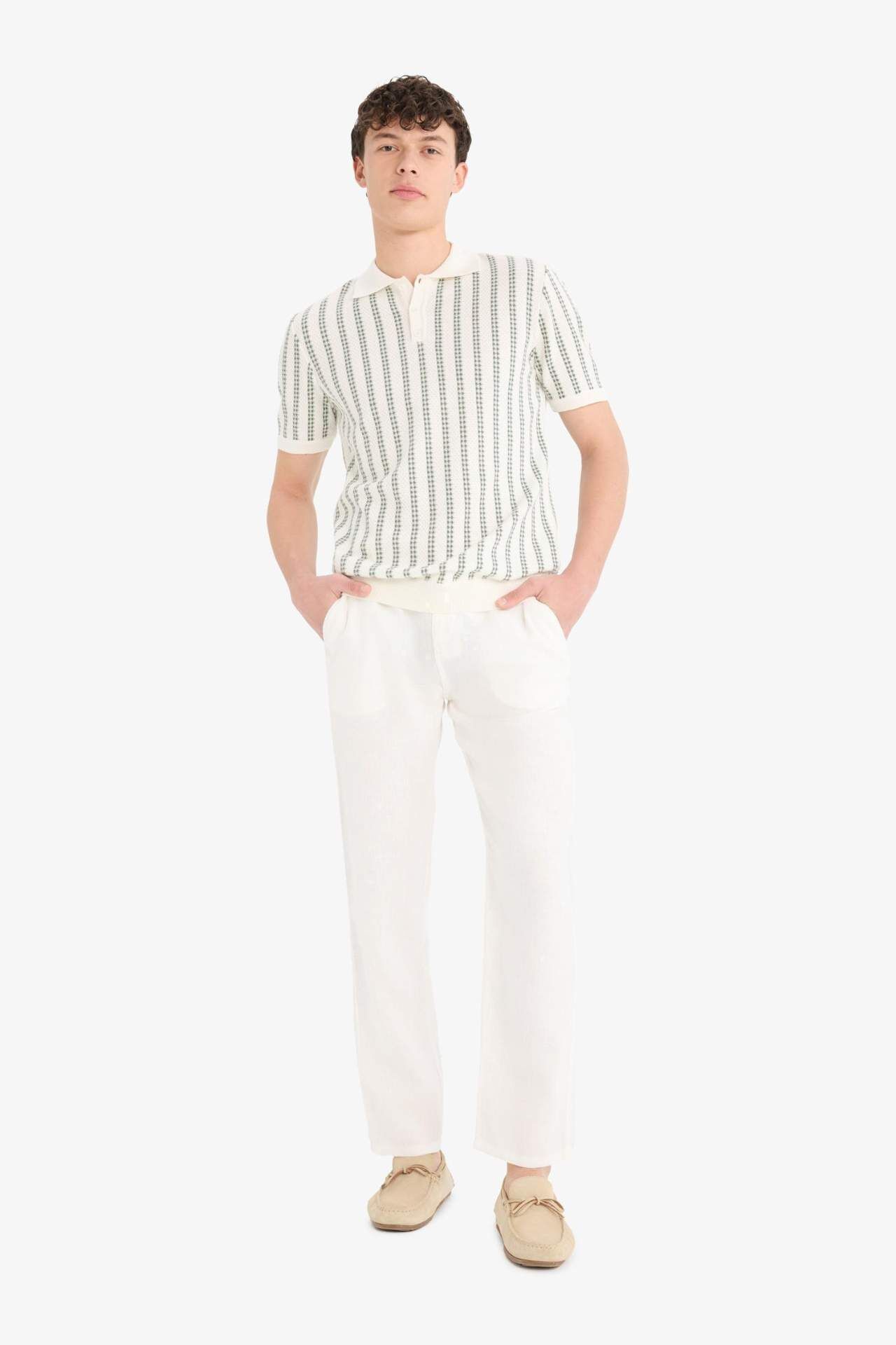 DeFacto %100 Keten Relax Fit Rahat Kesim Düz Paça Yazlık Pantolon