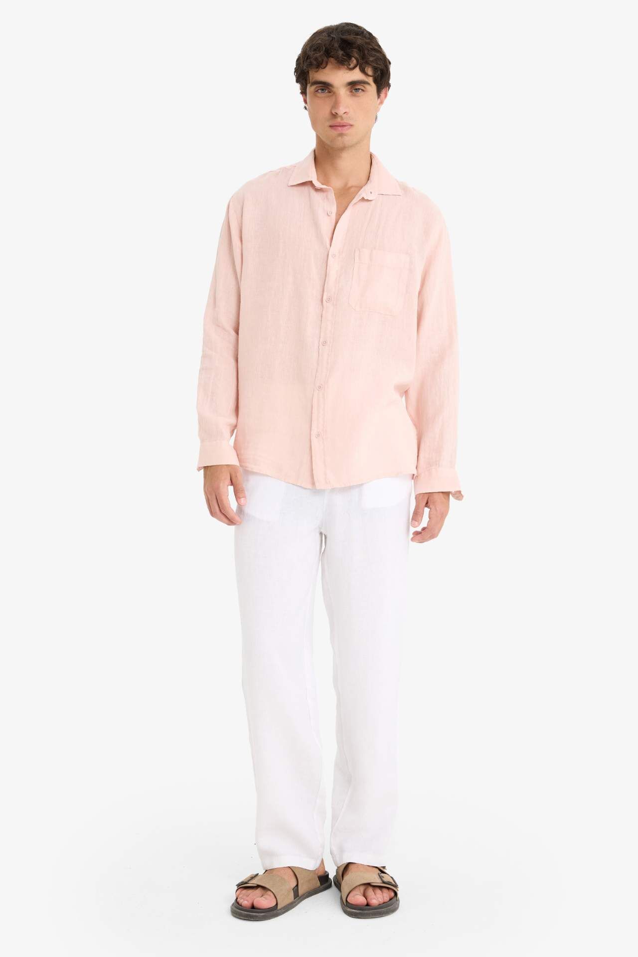 DeFacto %100 Keten Relax Fit Uzun Kollu Gömlek F4598AX25HSPN610