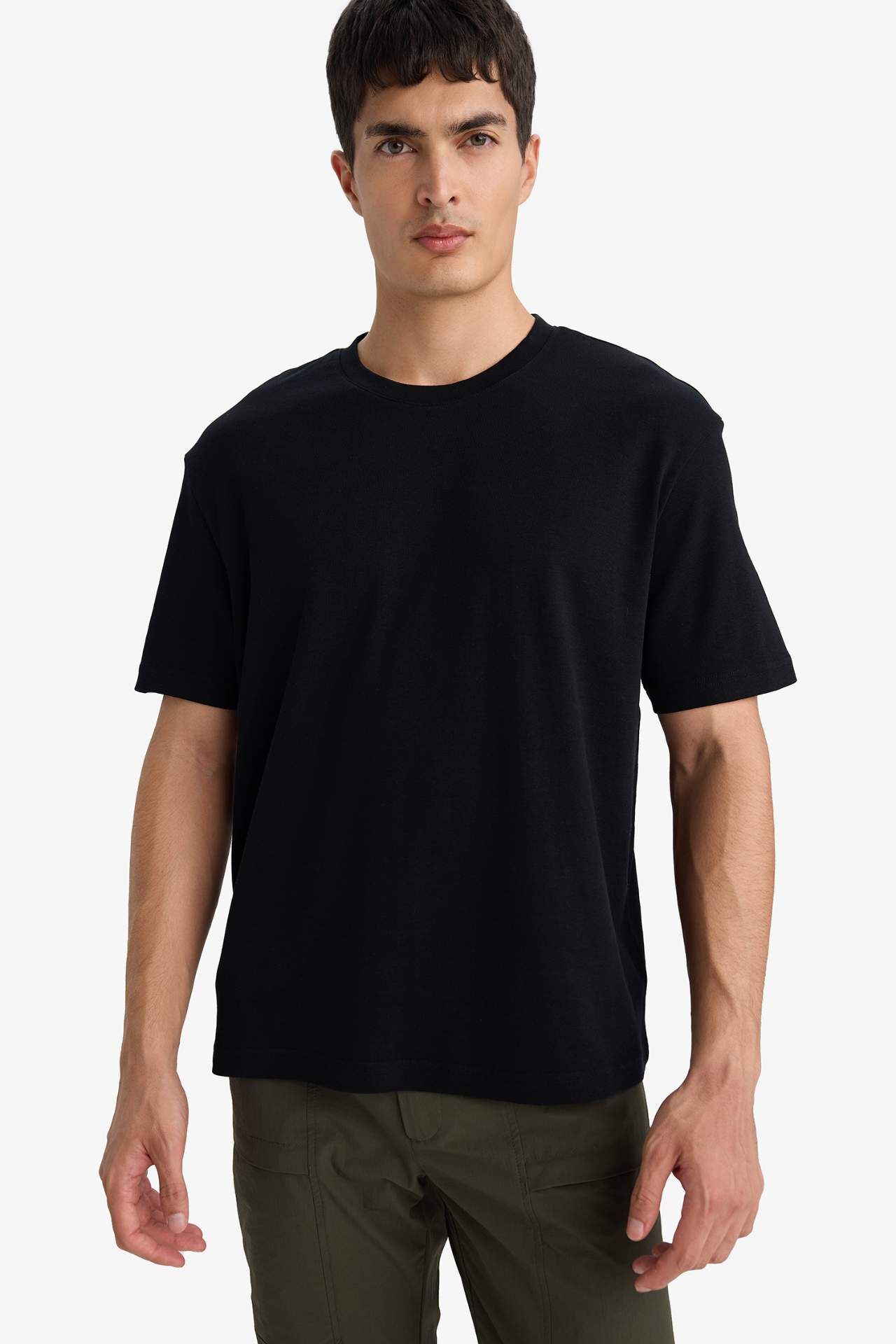 Regular Fit Bisiklet Yaka Kısa Kollu Tişört, rahat kesimiyle gün boyu konforlu bir kullanım sunar. Bisiklet yaka tasarımı sade ve zamansız bir görünüm kazandırırken, hafif kumaşı ferah bir his sağlar. Günlük ve casual kombinler için ideal bir parçadır. Pamuk 100% Manken Bedeni: Göğüs: 93 Boy: 1,85 Basen: 97 Bel: 87