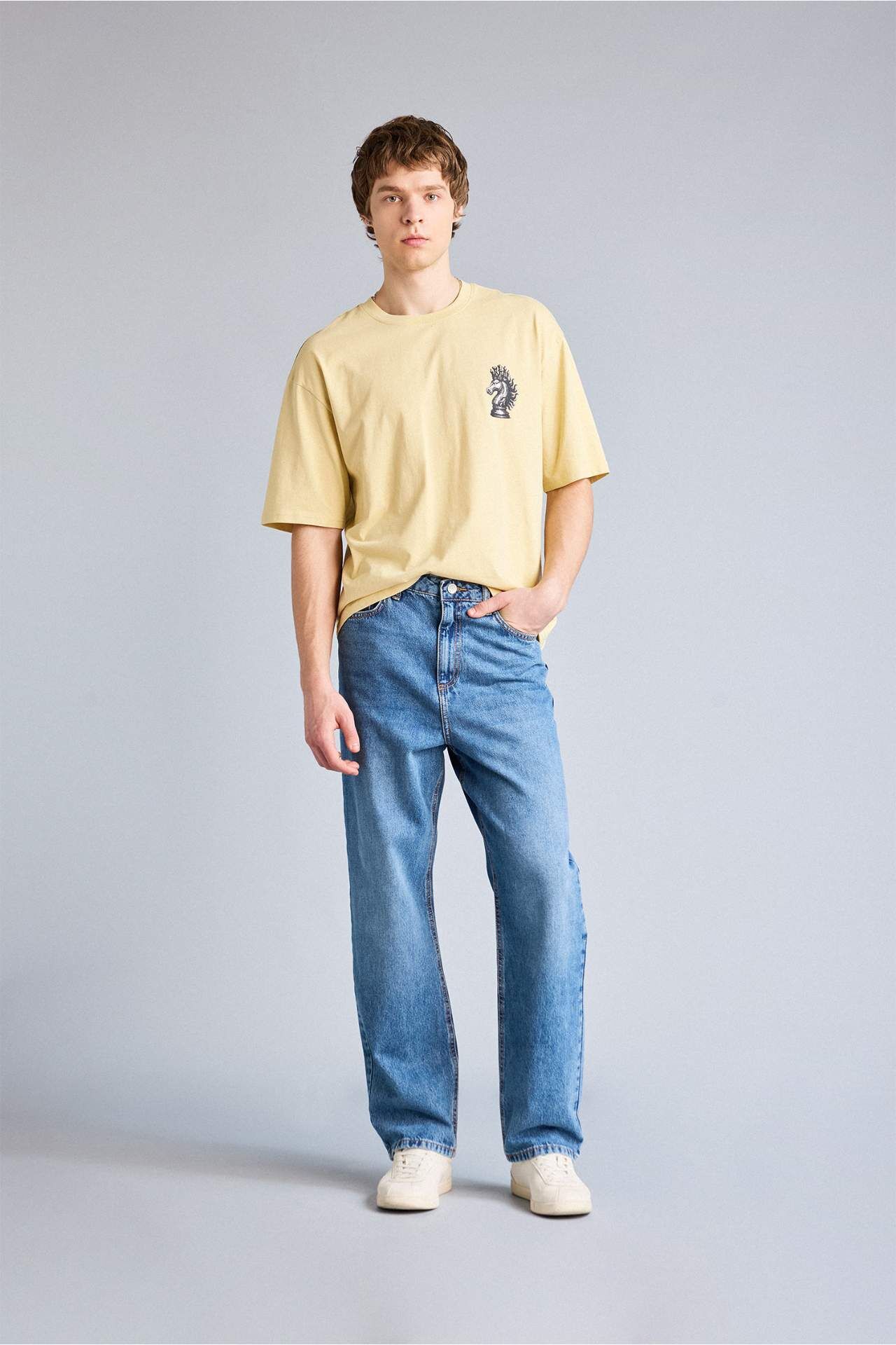%100 Pamuk Boxy Fit Baskılı Tişört
