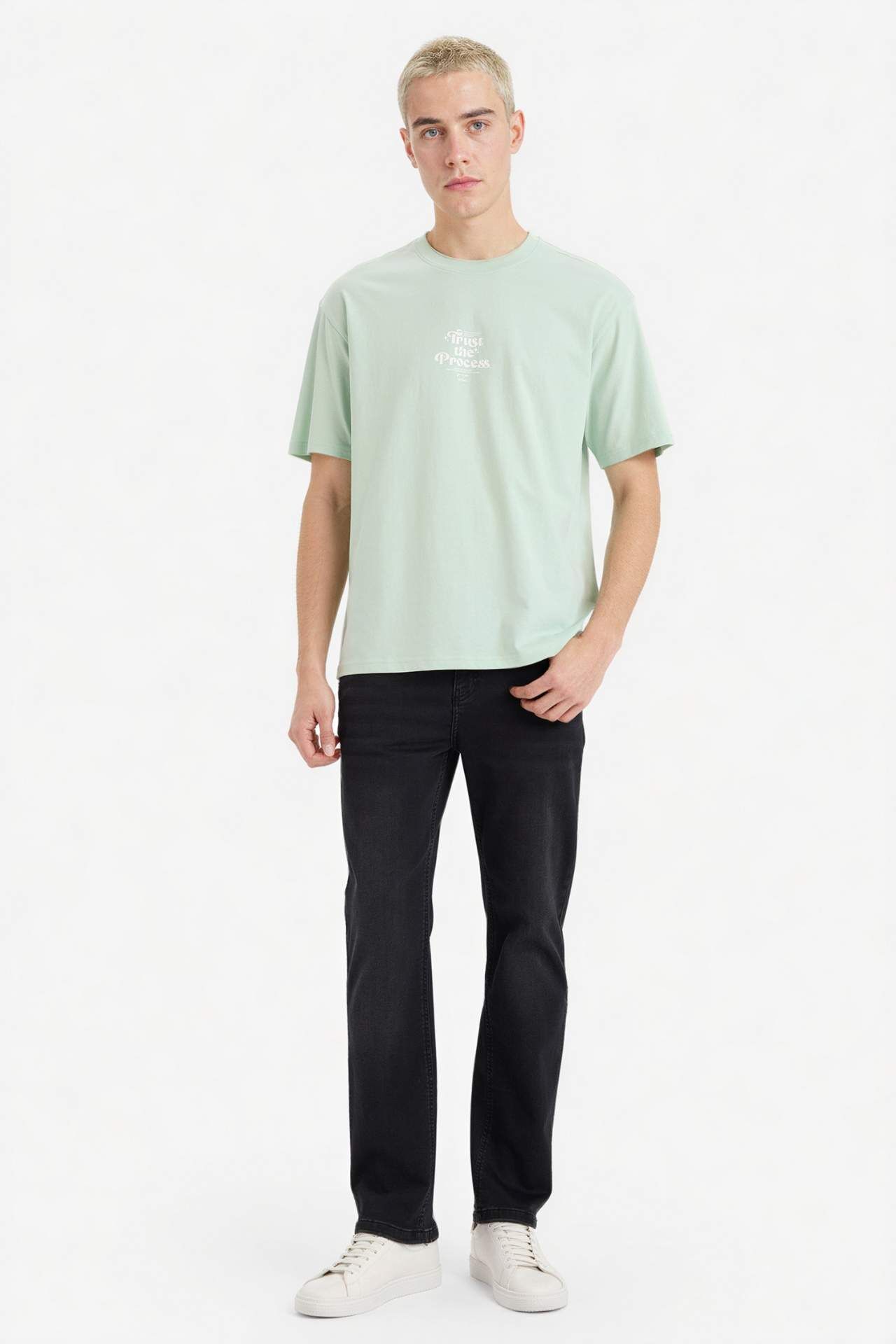 %100 Pamuk Boxy Fit Baskılı Tişört