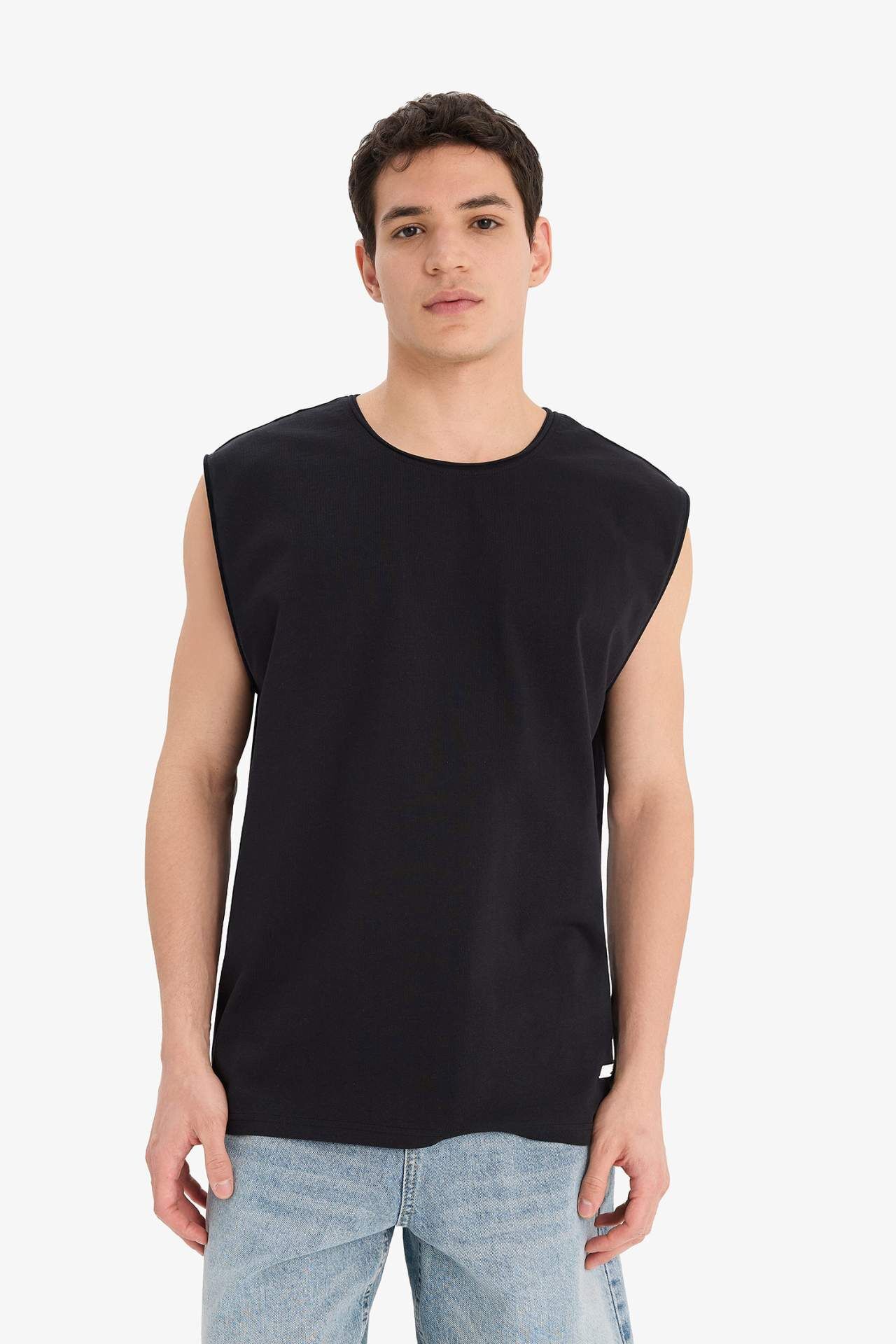 DeFacto %100 Pamuk Boxy Fit Bisiklet Yaka Basic Düz Atlet C7205AX25SMBK81
