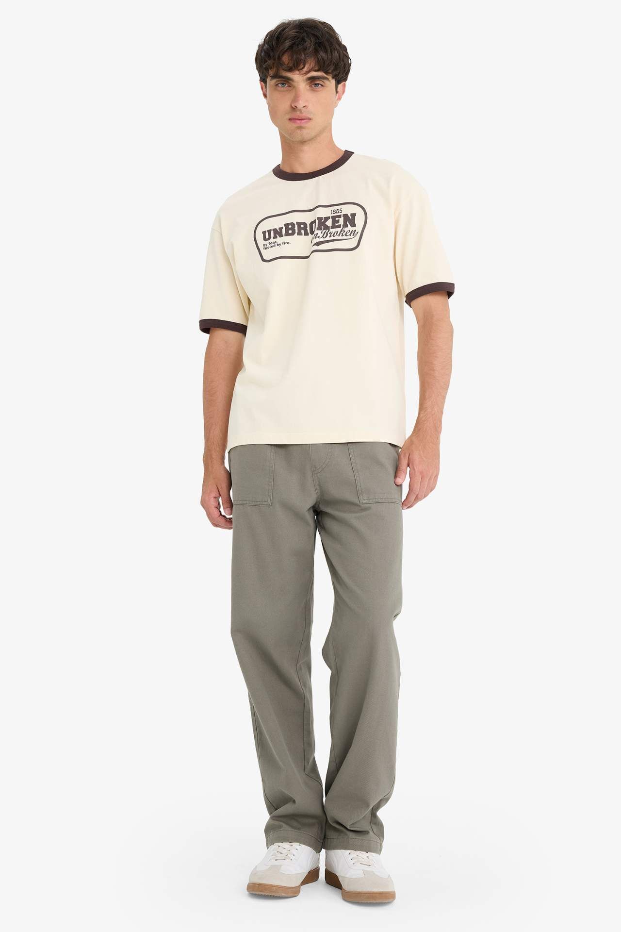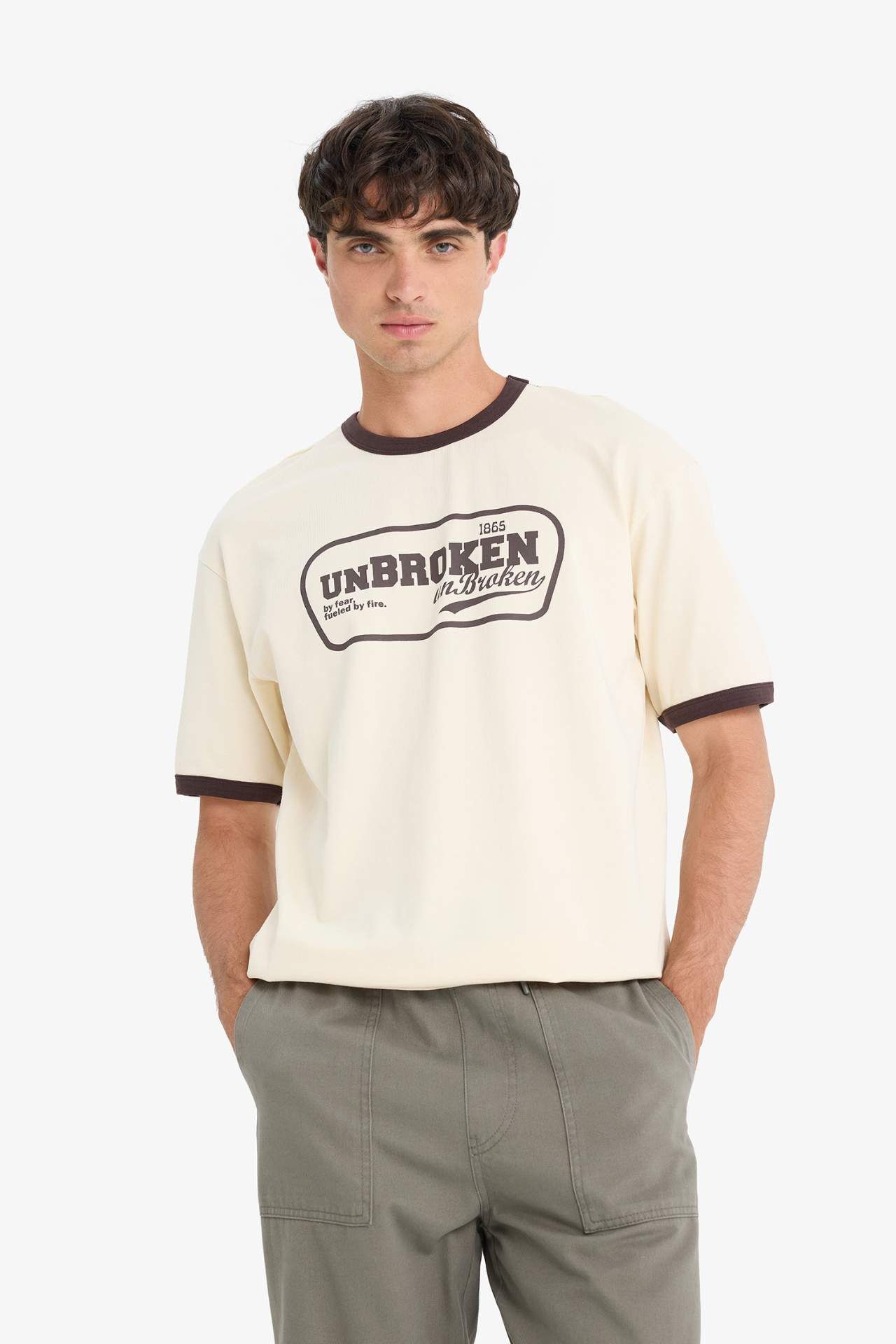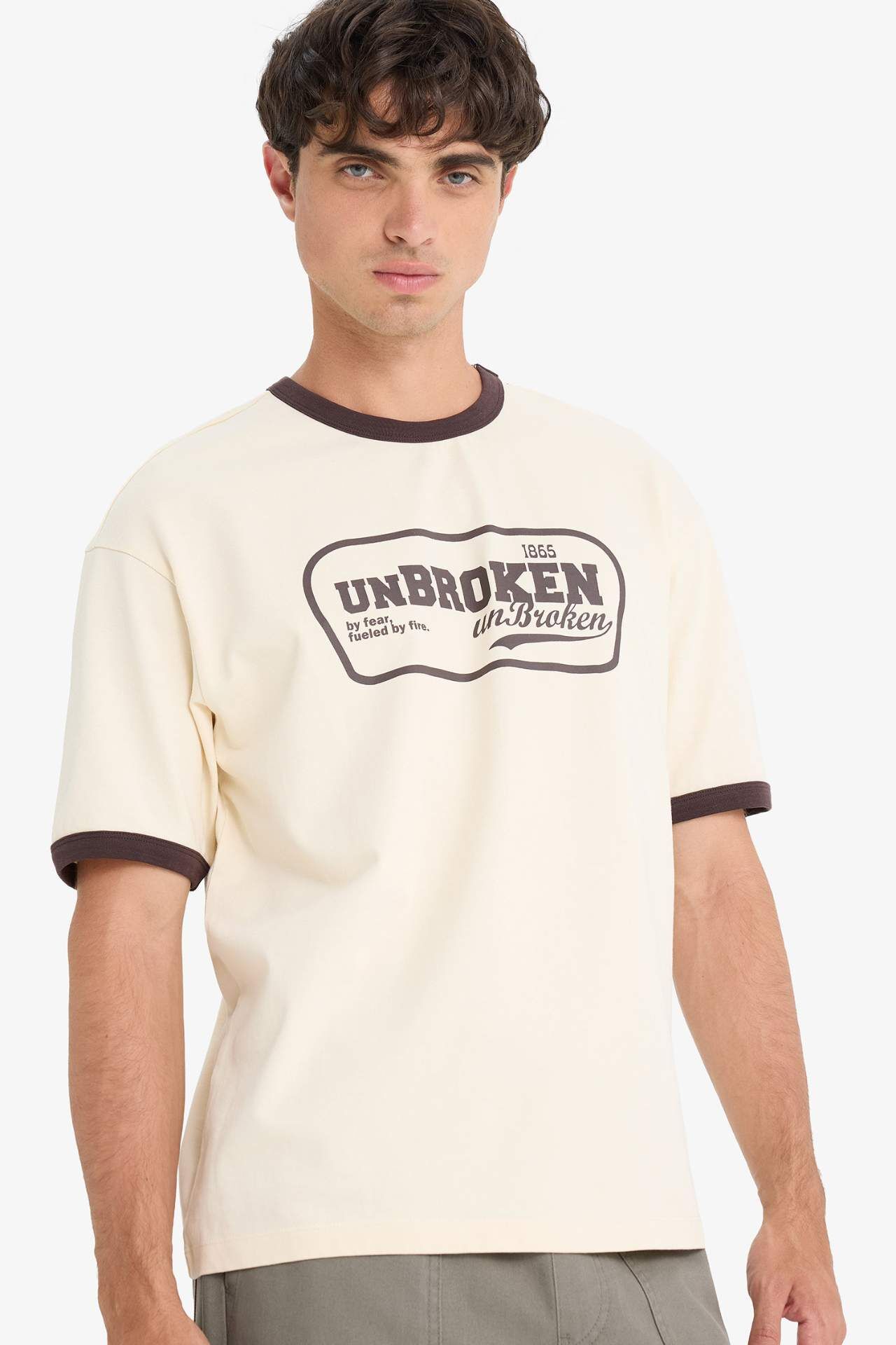 DeFacto %100 Pamuk Boxy Fit Bisiklet Yaka Baskılı Kısa Kollu Tişört F4446AX25SMER78
