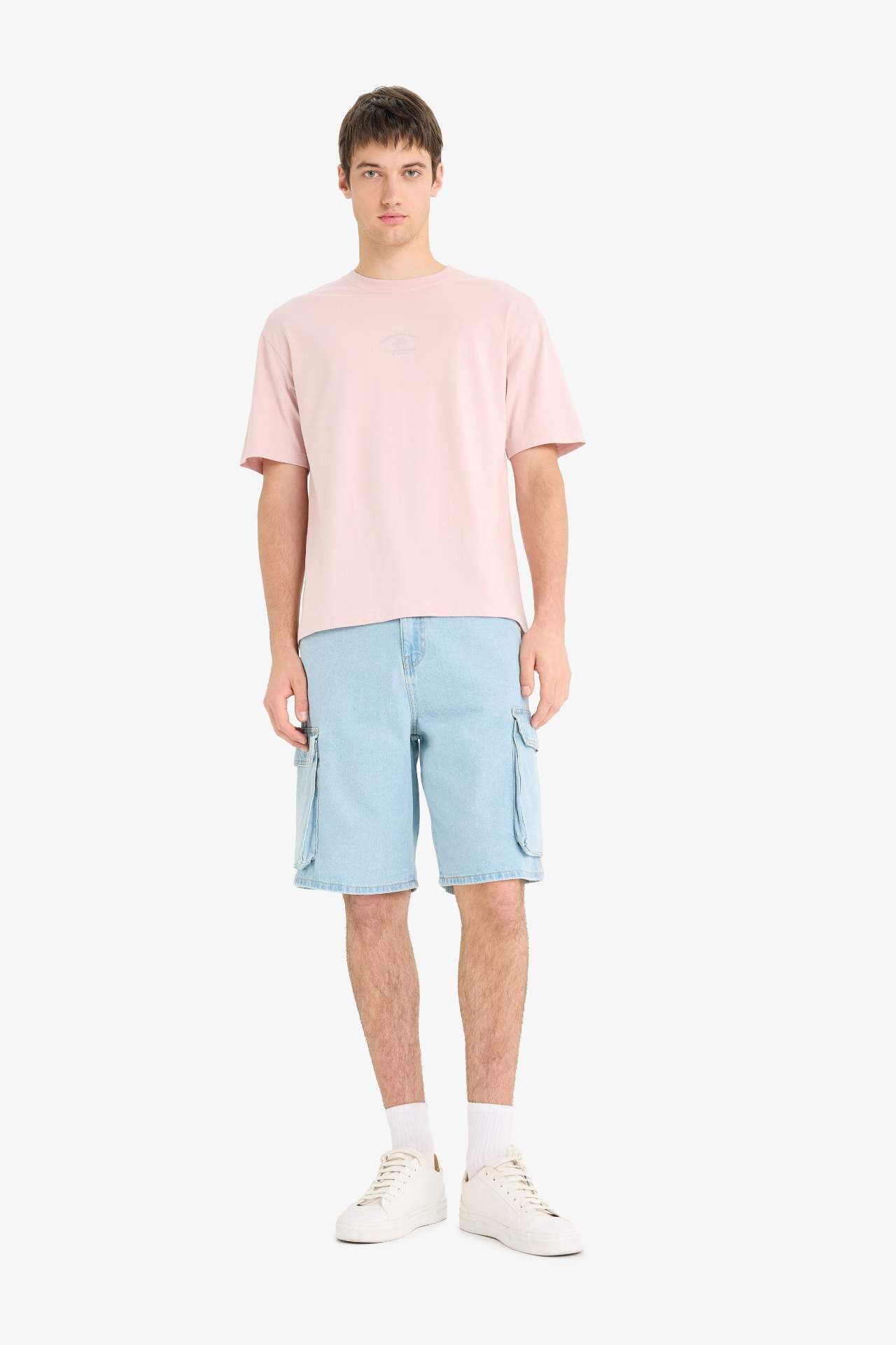 DeFacto %100 Pamuk Boxy Fit Bisiklet Yaka Baskılı Kısa Kollu Tişört F5766AX25SMPR345