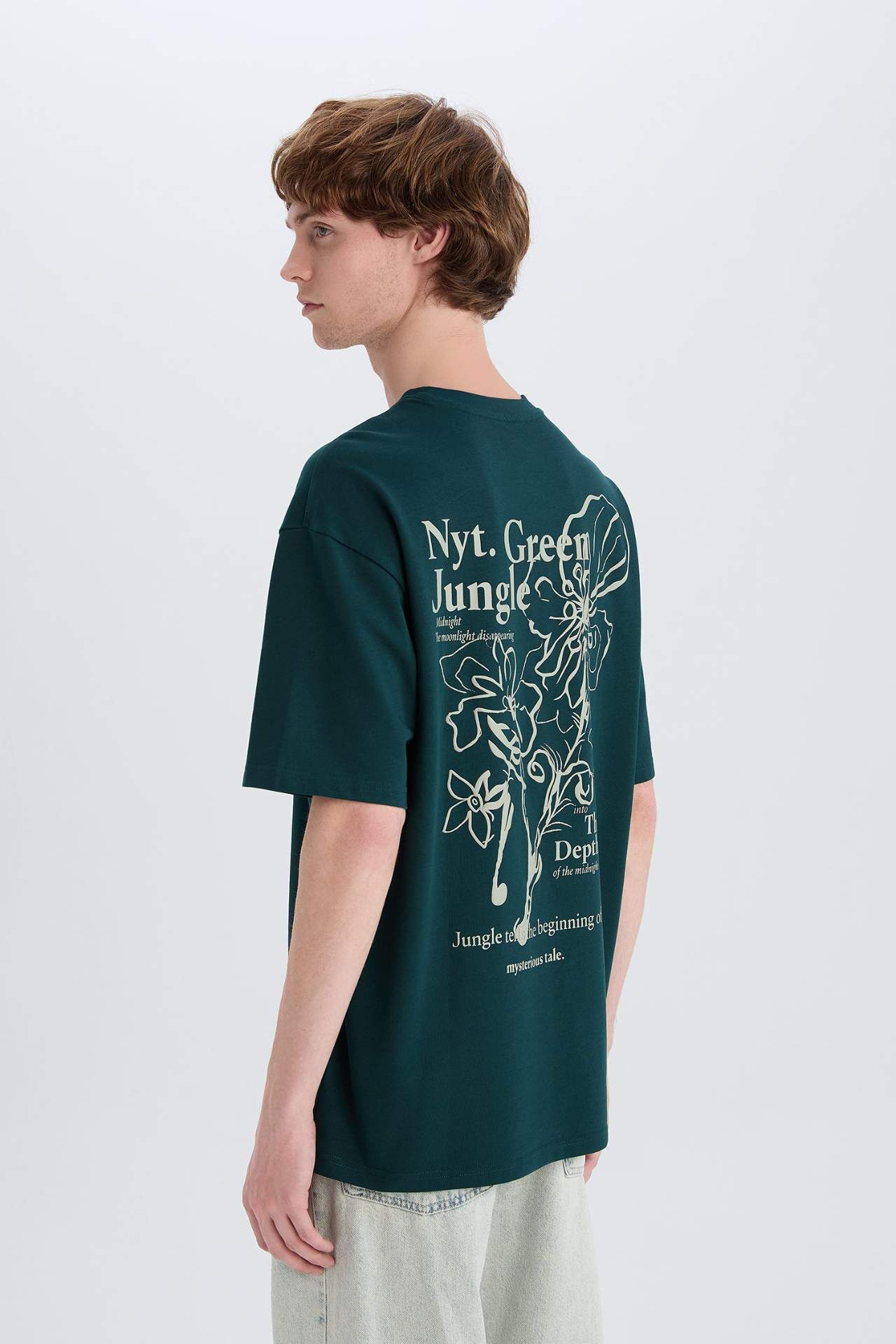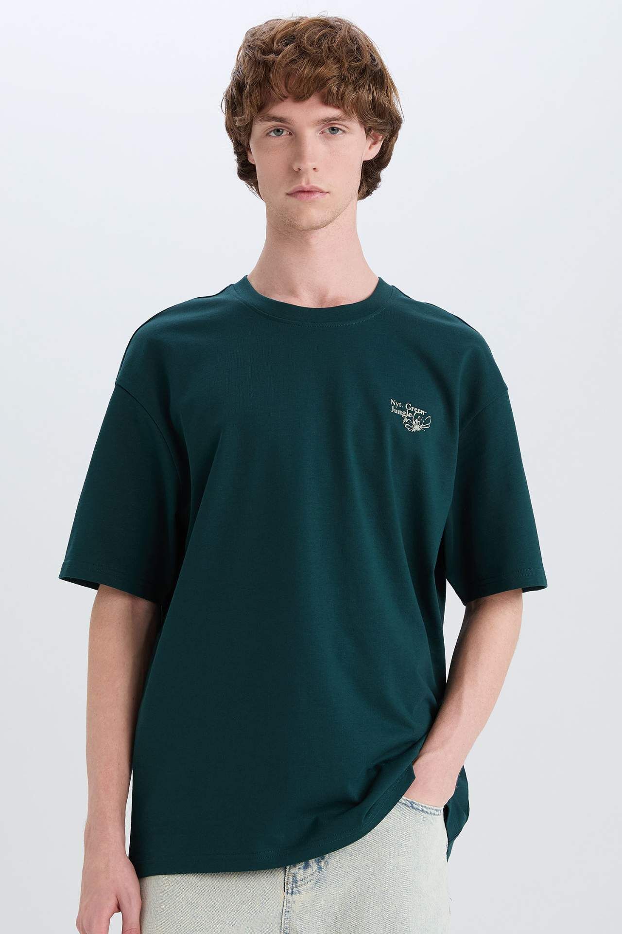 DeFacto %100 Pamuk Boxy Fit Bisiklet Yaka Sırt Baskılı Kısa Kollu Tişört E3941AX25SMGN465
