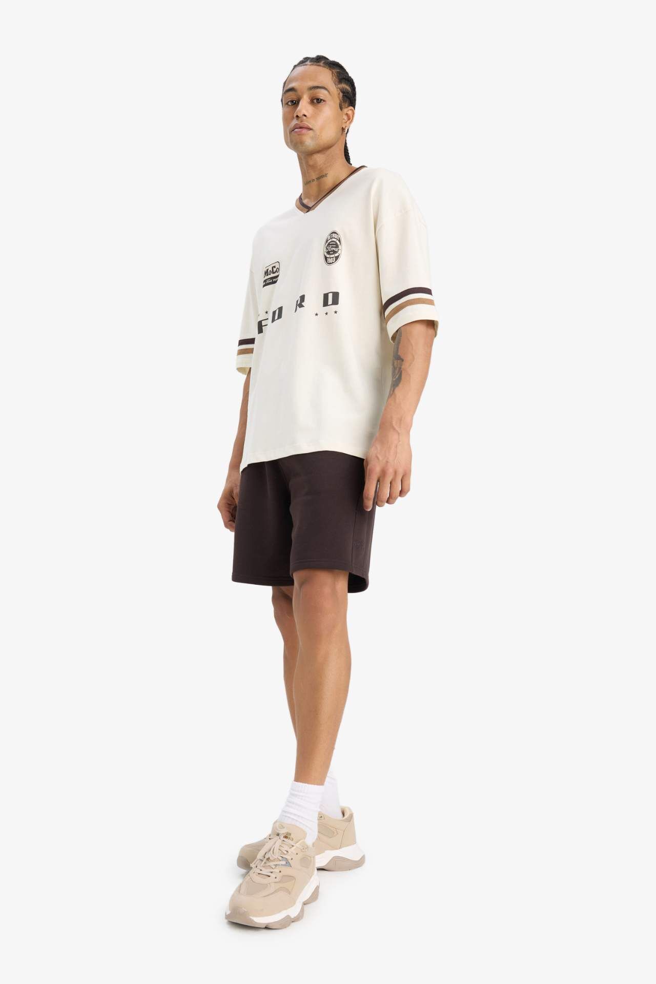 DeFacto %100 Pamuk Ford Motor Company Loose Fit V Yaka Kısa Kollu Tişört