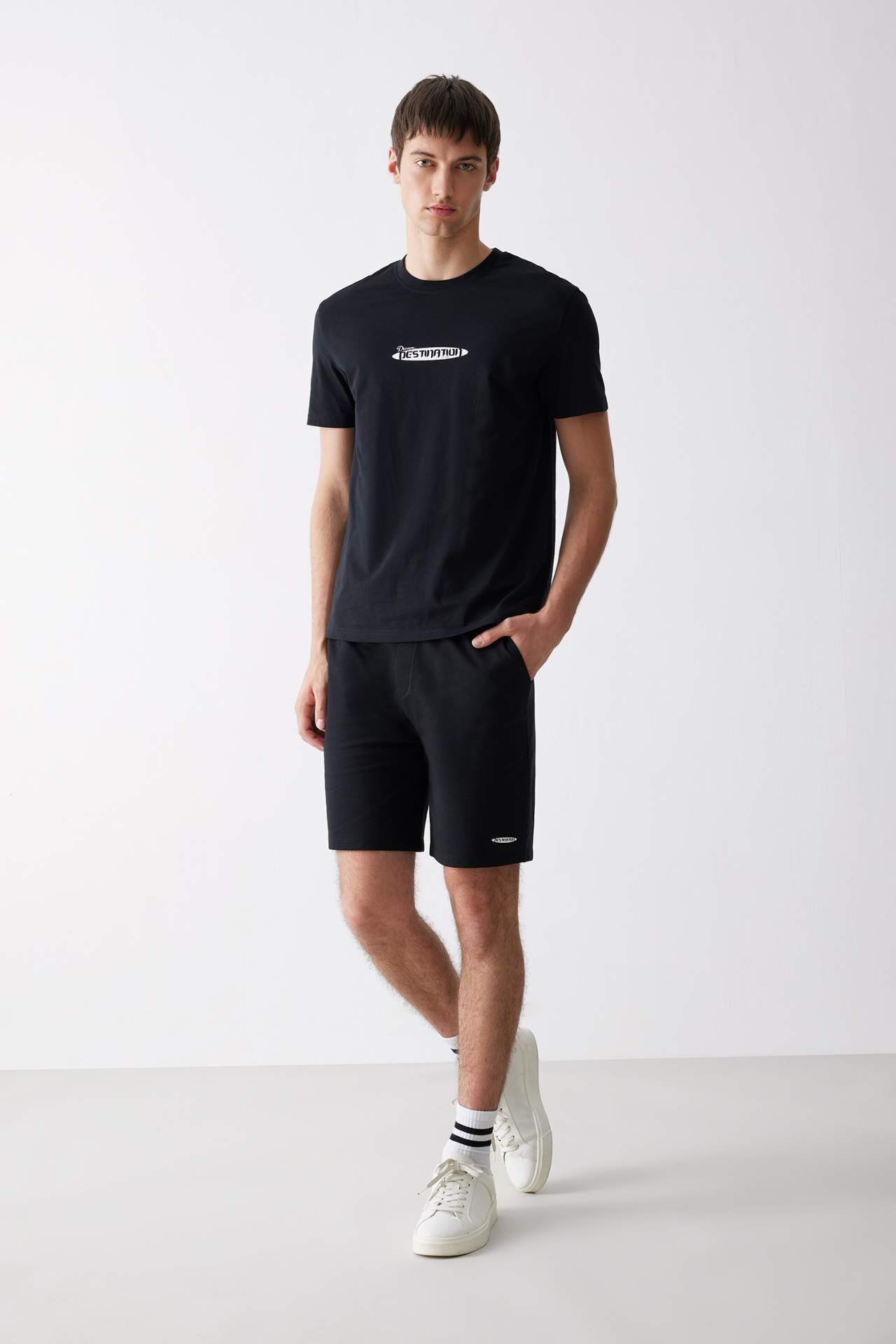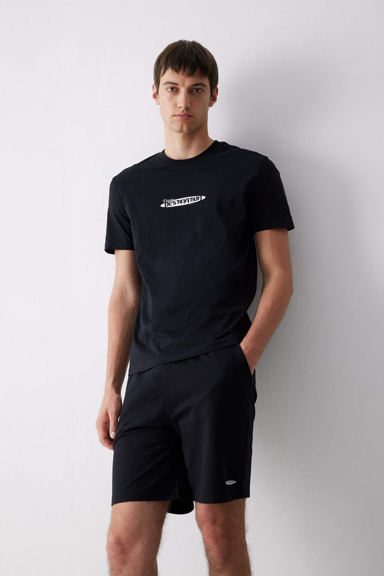 DeFacto %100 Pamuk Regular Fit Bisiklet Yaka Baskılı Kısa Kollu Tişört E3783AX25SMBK81