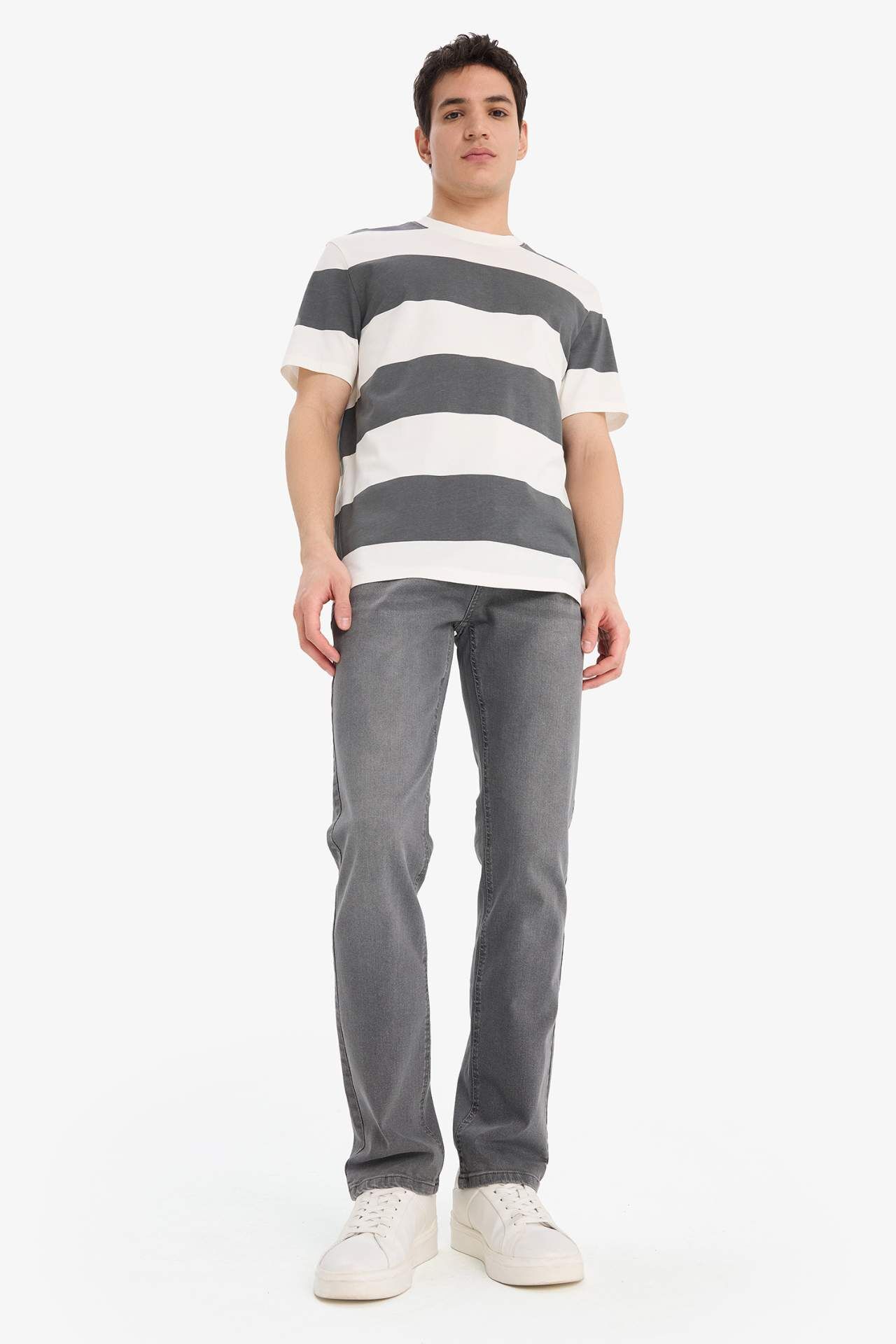 DeFacto %100 Pamuk Regular Fit Bisiklet Yaka Çizgili Kısa Kollu Tişört E5485AX25SMAR216