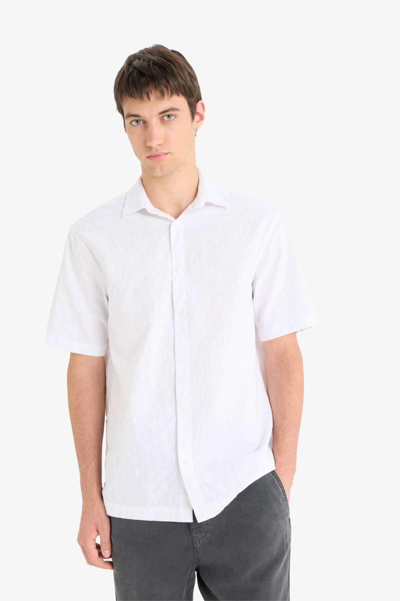 DeFacto %100 Pamuk Regular Fit Gömlek Yaka Jakarlı Kısa Kollu Gömlek