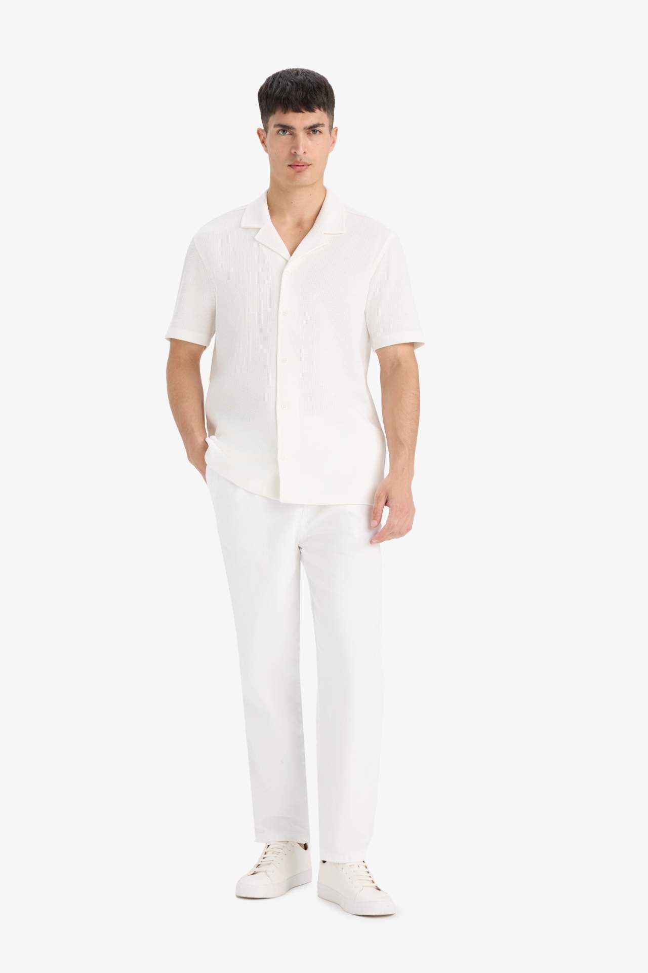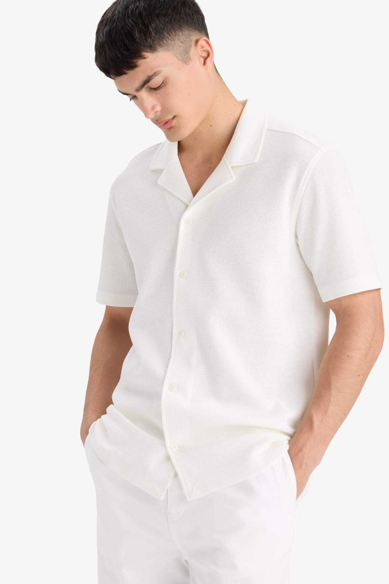 DeFacto %100 Pamuk Regular Fit Polo Yaka Waffle Kısa Kollu Gömlek