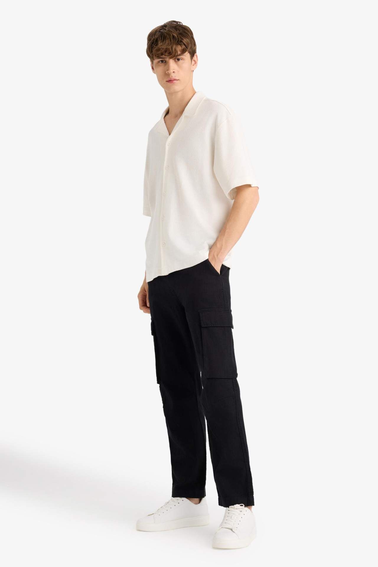 DeFacto %100 Pamuk Relax Fit Keten Görünümlü Fermuarlı Düz Paça Pantolon