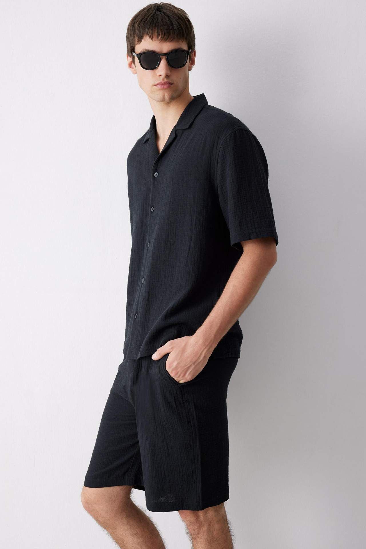 %100 pamuk müslin kumaştan üretilen bu relax fit bermuda şort, nefes alabilir yapısıyla yaz aylarında ferahlık sağlar. Cepli ve basic düz tasarımıyla hem şık hem kullanışlıdır. Rahat kesimi sayesinde günlük kullanıma uygundur. Pamuk 100%,Pamuk 100%,Pamuk 100%,Pamuk 100%,Pamuk 100%,Pamuk 100%,Pamuk 100% Manken Bedeni: Göğüs: 93 Boy: 1,9 Basen: 91 Bel: 72