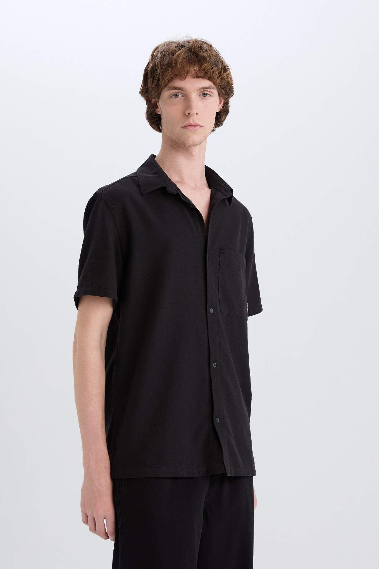 DeFacto %100 Pamuk Slim Fit Dar Kesim Basic Düz Kısa Kollu Gömlek
