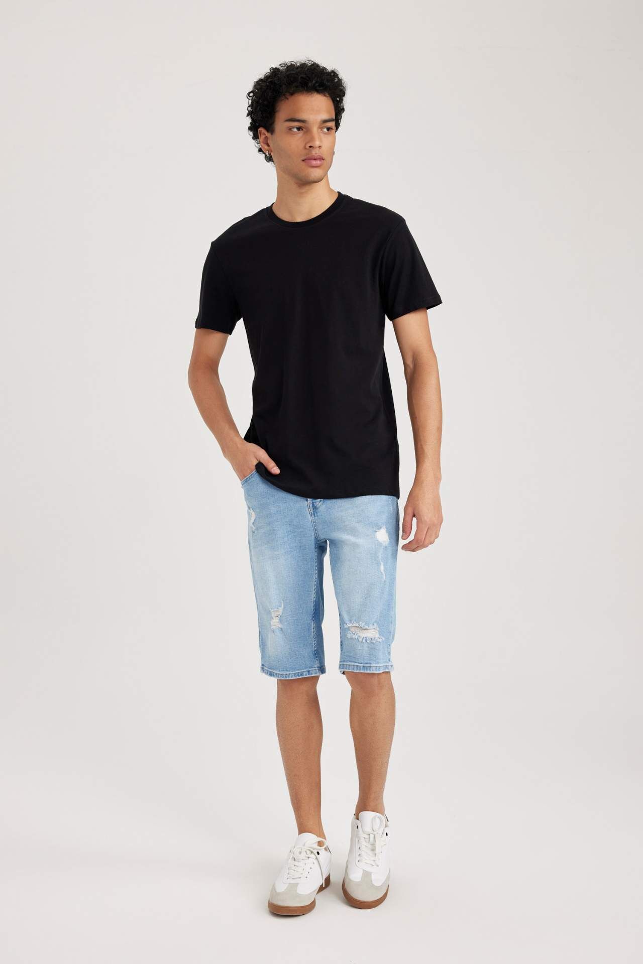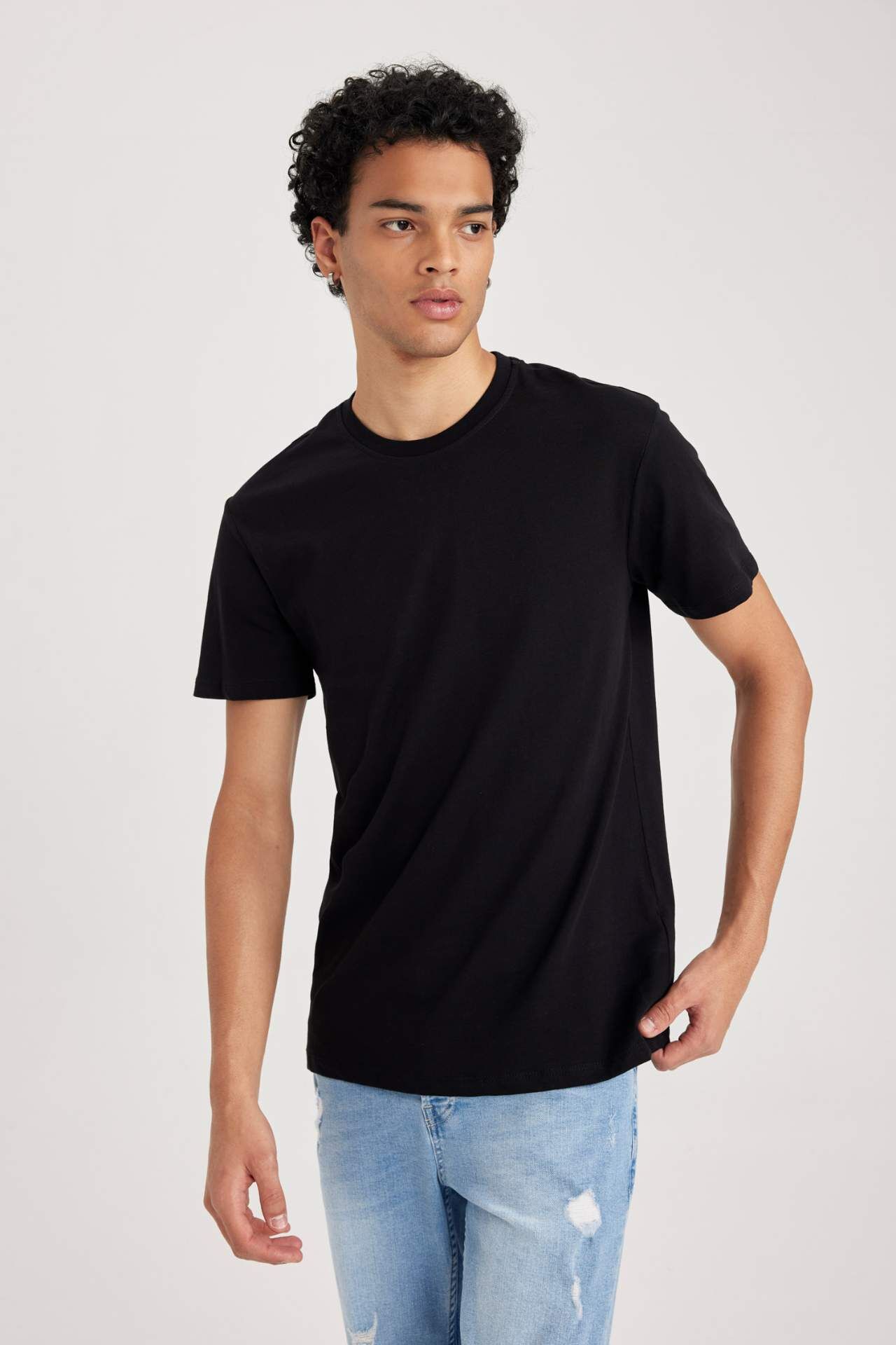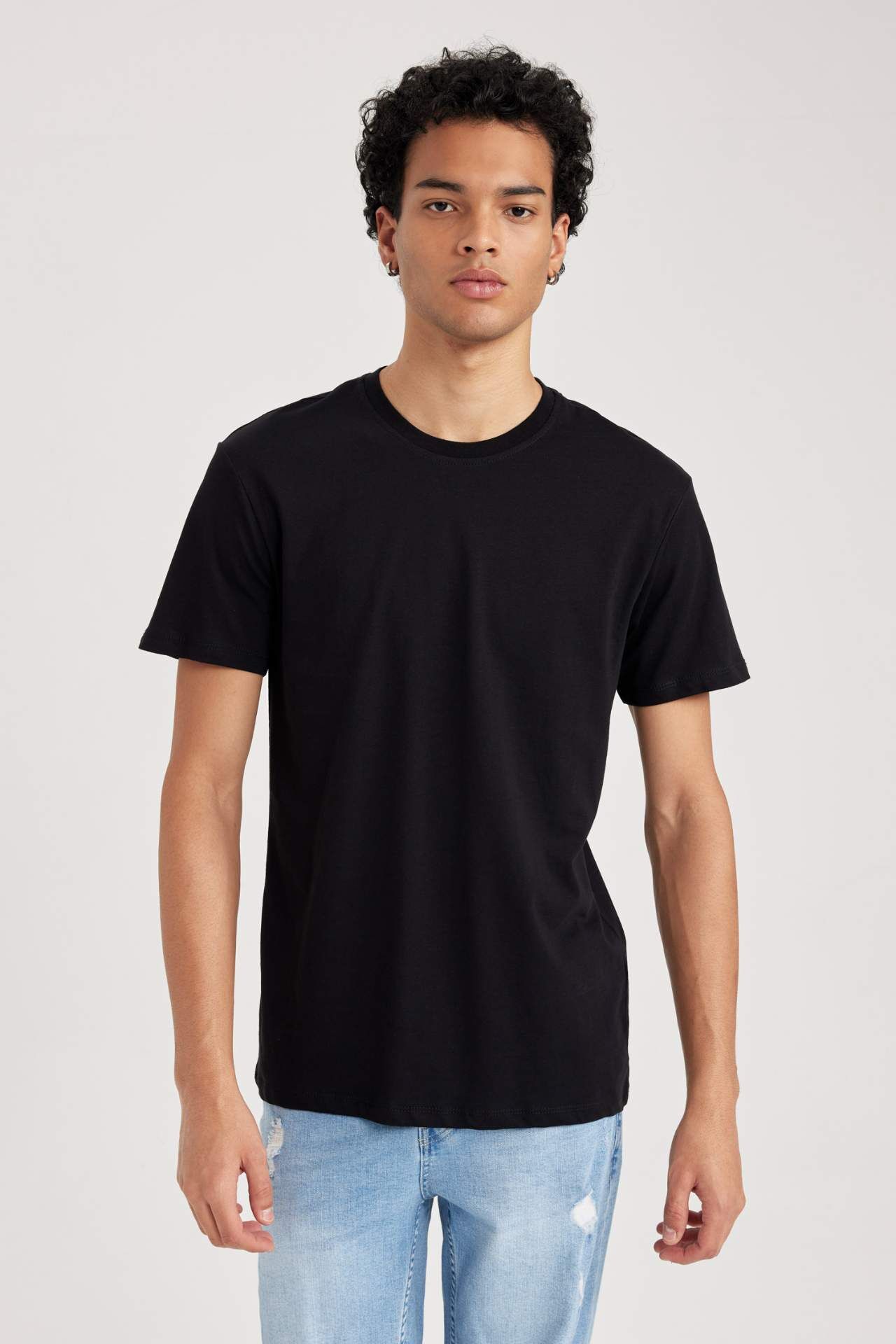 DeFacto %100 Pamuk Slim Fit Dar Kesim Bisiklet Yaka Basic Düz Kısa Kollu Tişört B0653AXNSBK81