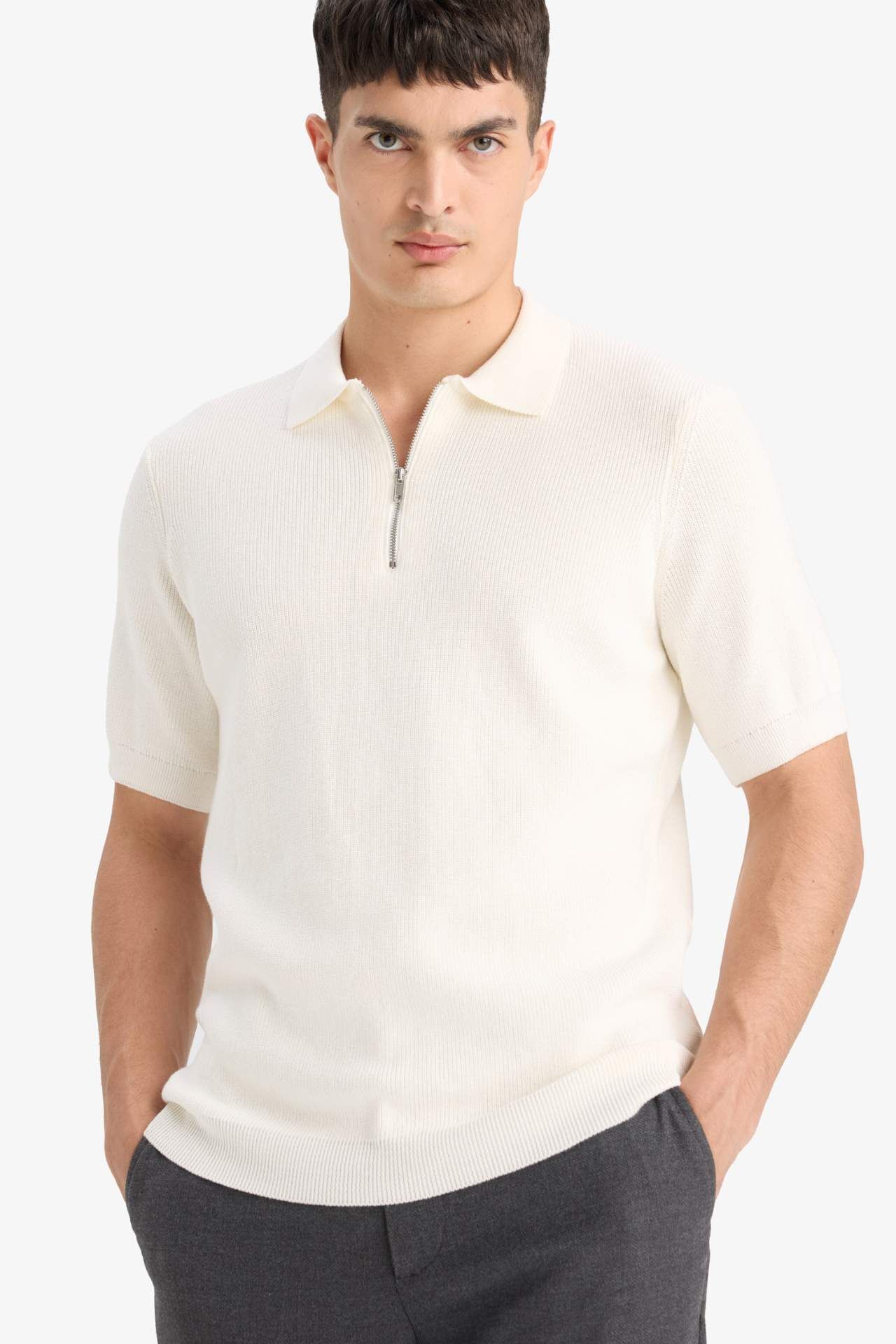 DeFacto %100 Pamuk Standart Fit Yarım Fermuarlı Kısa Kollu Triko Polo Tişört E5862AX25SMER139
