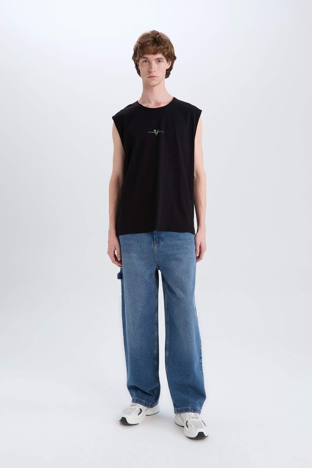 DeFacto %100 Pamuk Vikings Valhalla Boxy Fit Sırt Baskılı Bisiklet Yaka Atlet