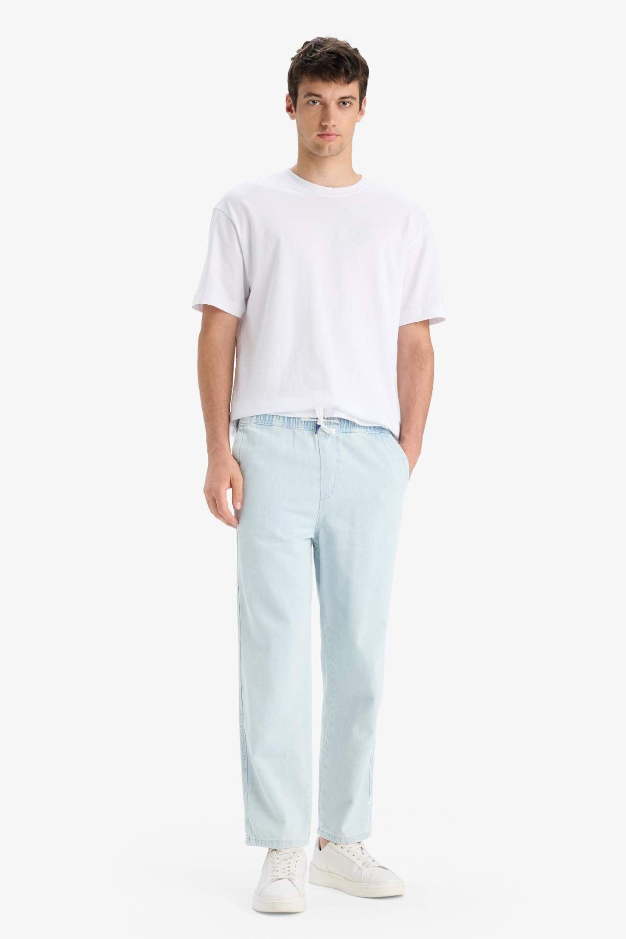 DeFacto %100 Pamuk Wide Leg Fit Geniş Kalıp Normal Bel Beli Lastikli Geniş Paça Yazlık Jean Pantolon