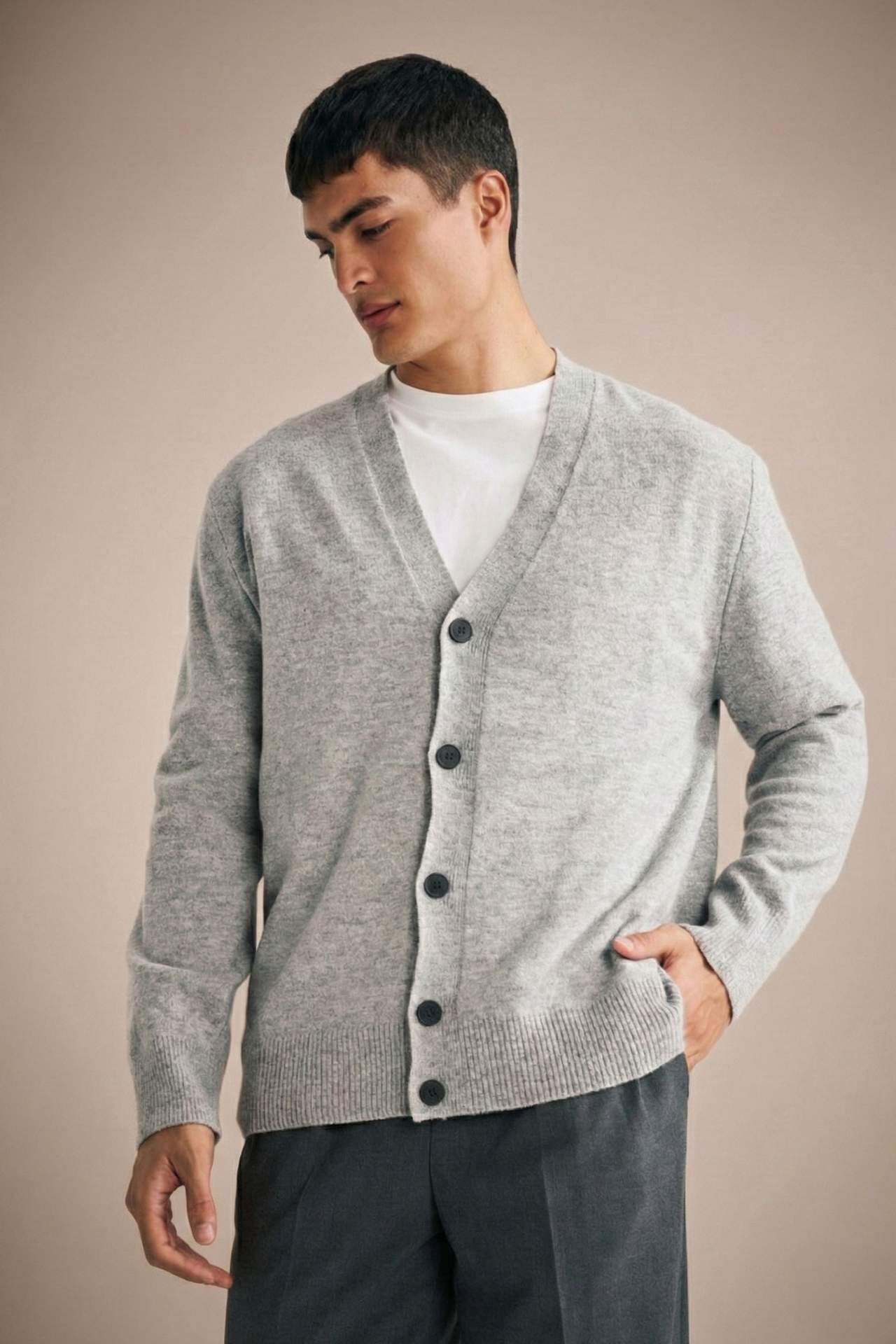 %100 Yün Relax Fit V Yaka Düğmeli Hırka