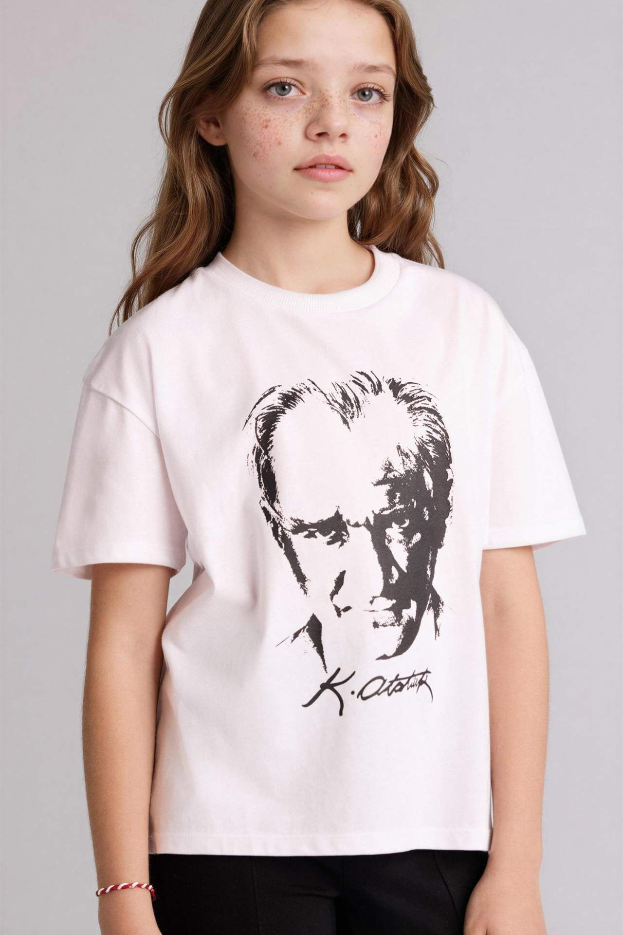 DeFacto 23 Nisan Çocuk Bayramı Atatürk Baskılı Tişört Kız Çocuk