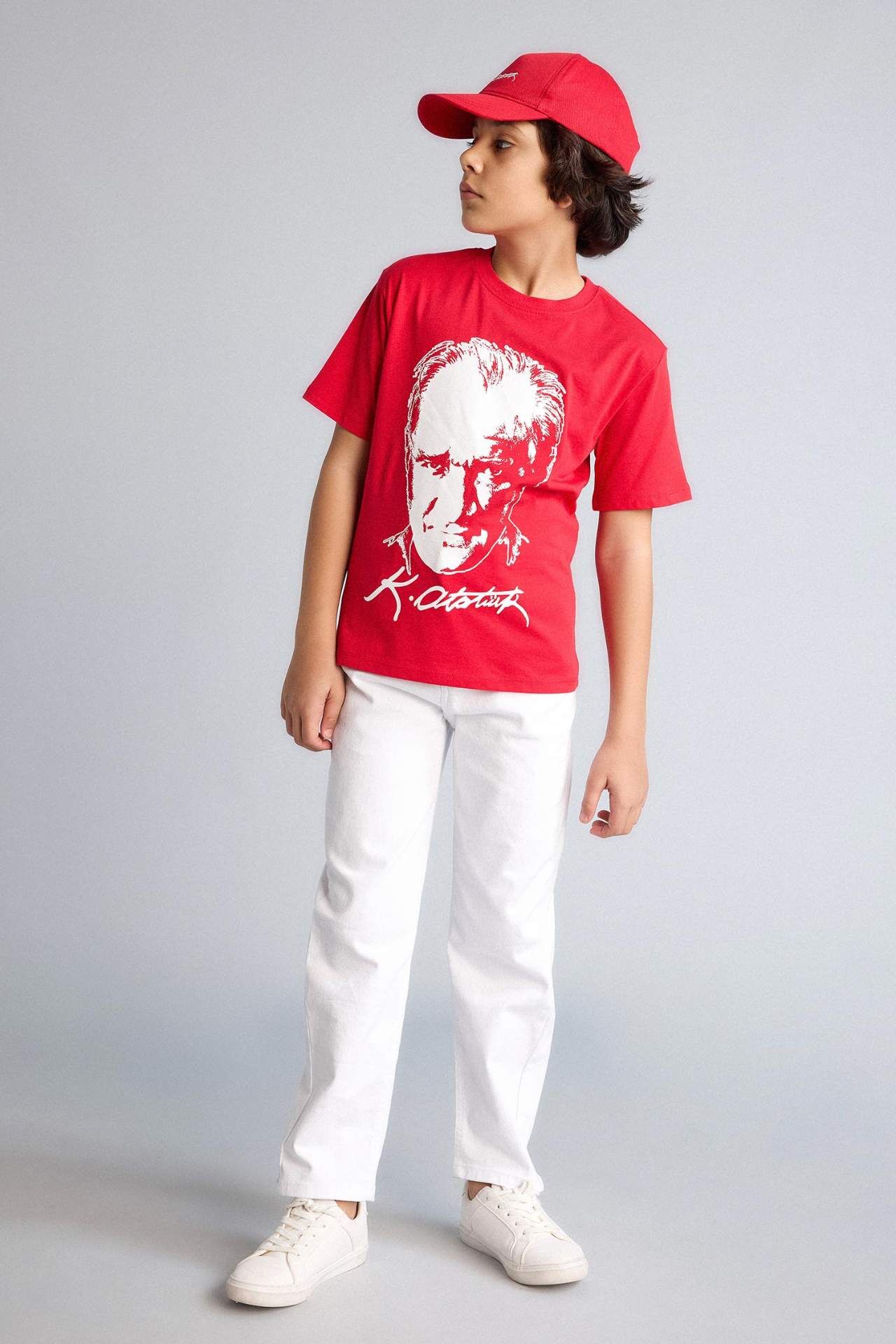 DeFacto 23 Nisan Çocuk Bayramı Regular Fıt Bisiklet Yaka Baskılı Kısa Kollu Tişört Erkek Çocuk