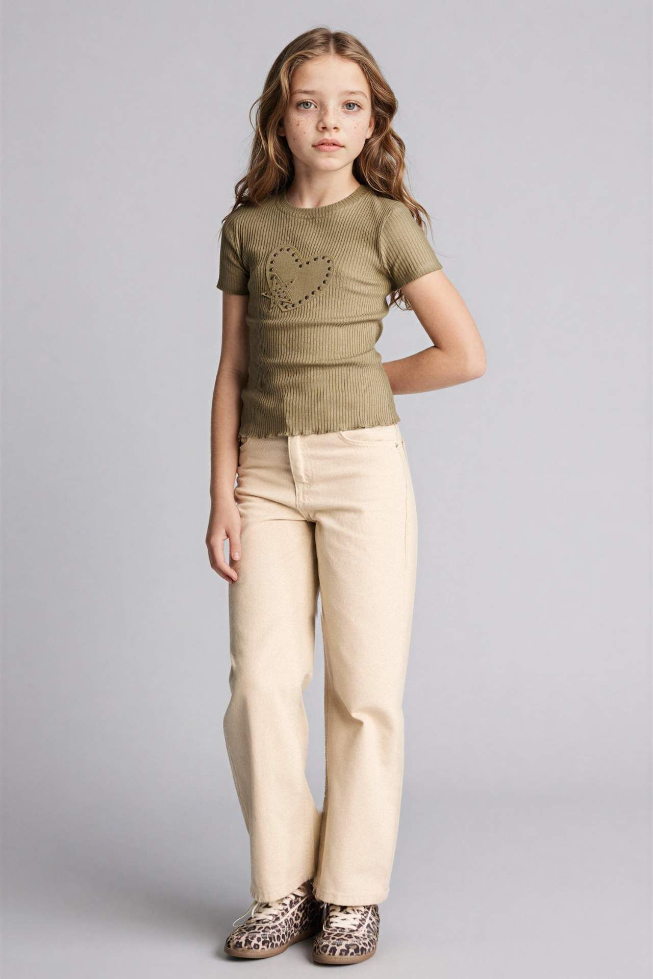 90's Wıde Leg İspanyol Paça Gabardin Pantolon Kız Çocuk