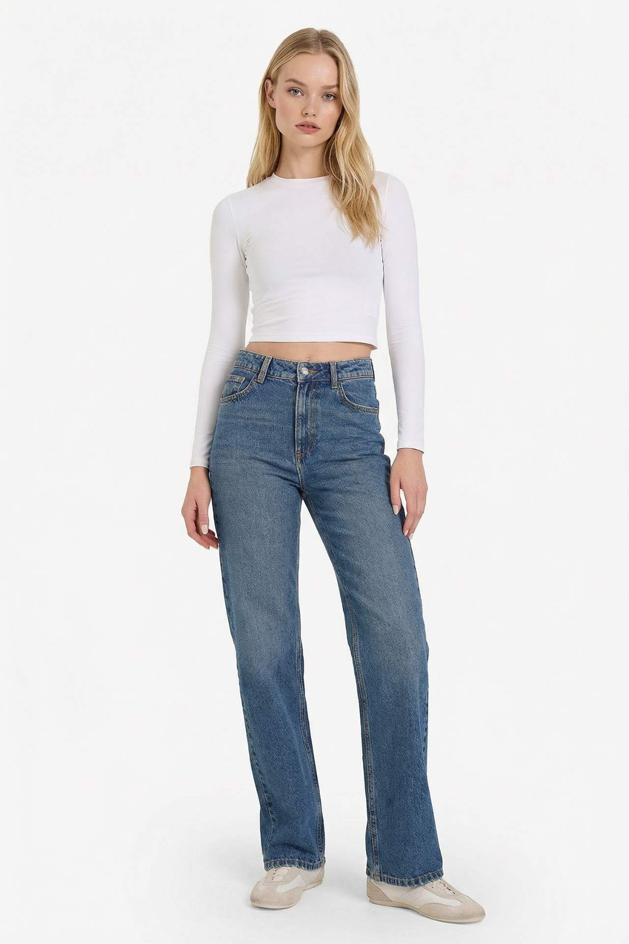 90's wide leg yüksek bel jean pantolon, retro tarzı modern dokunuşlarla birleştirir. Geniş paçaları ve yüksek beli sayesinde hem rahat hem de şık bir siluet yaratır. Günlük kombinlerde vintage esintili stil arayanlar için ideal bir seçim. Pamuk 100%