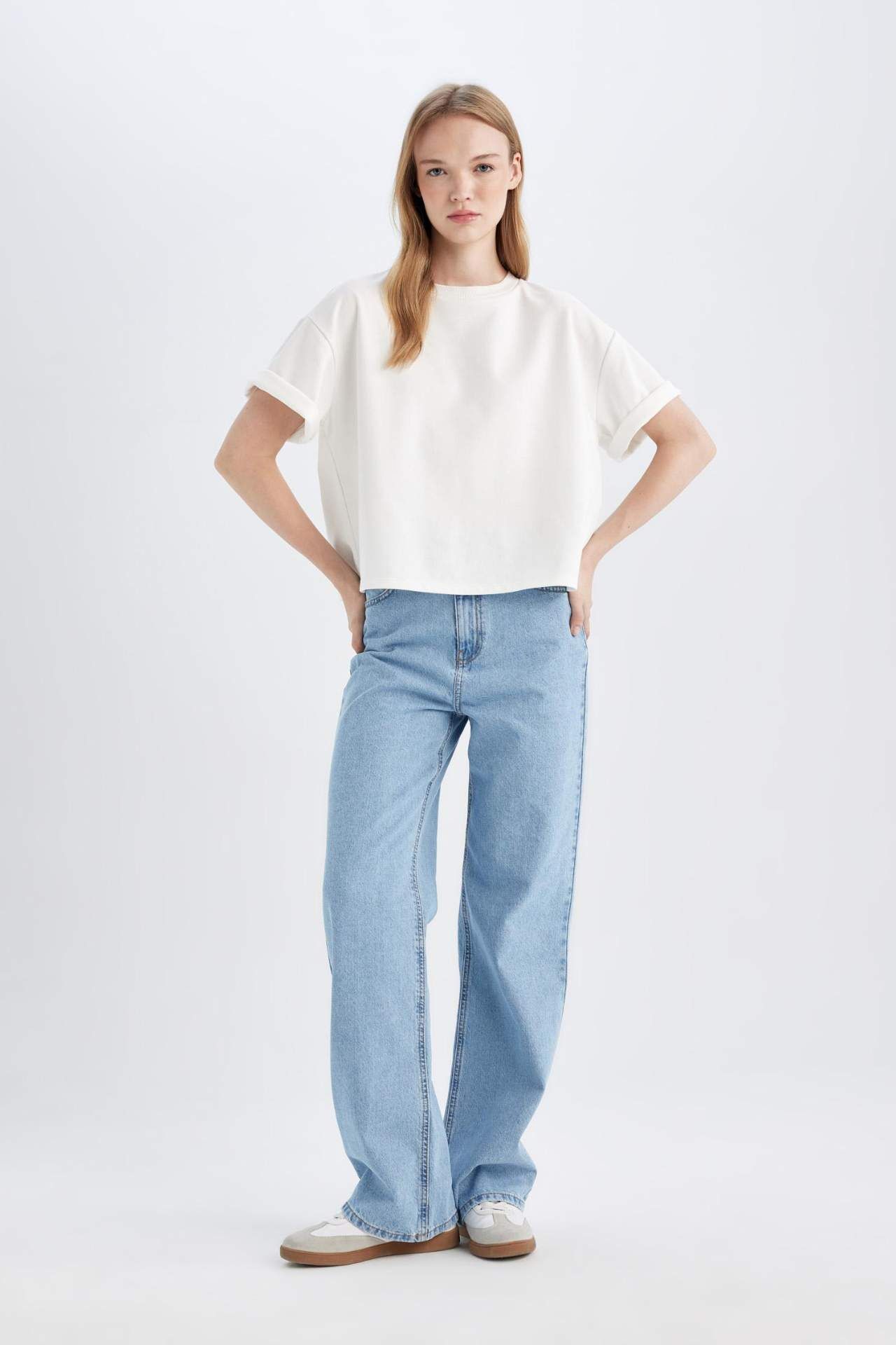 DeFacto 90's Wide Leg Yüksek Bel Paça Ucu Kesik Uzun Jean Yıkamalı Pantolon
