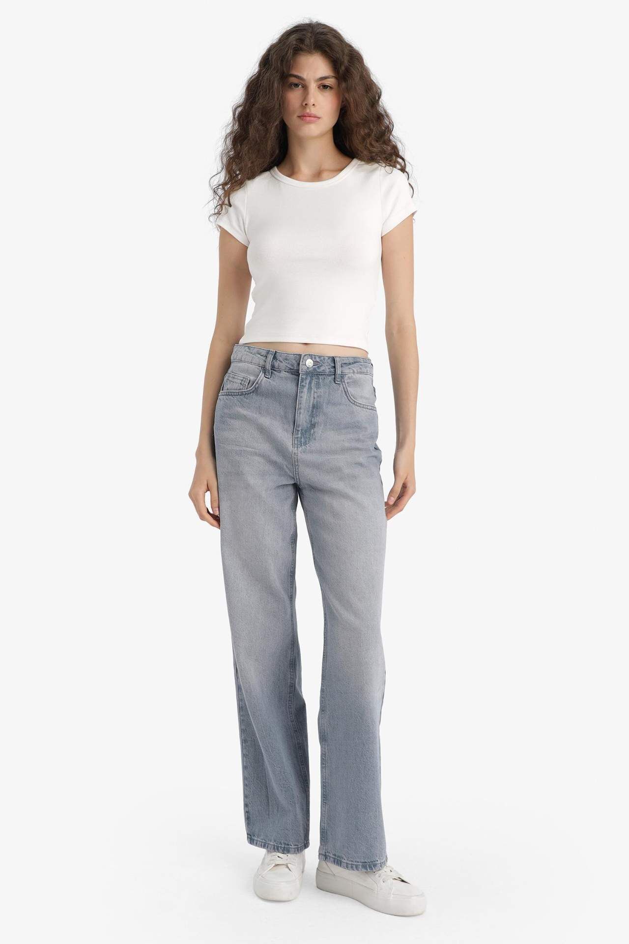 DeFacto 90's Wide Leg Yüksek Bel Uzun Jean Yıkamalı Pantolon F6336AX25HSNM55