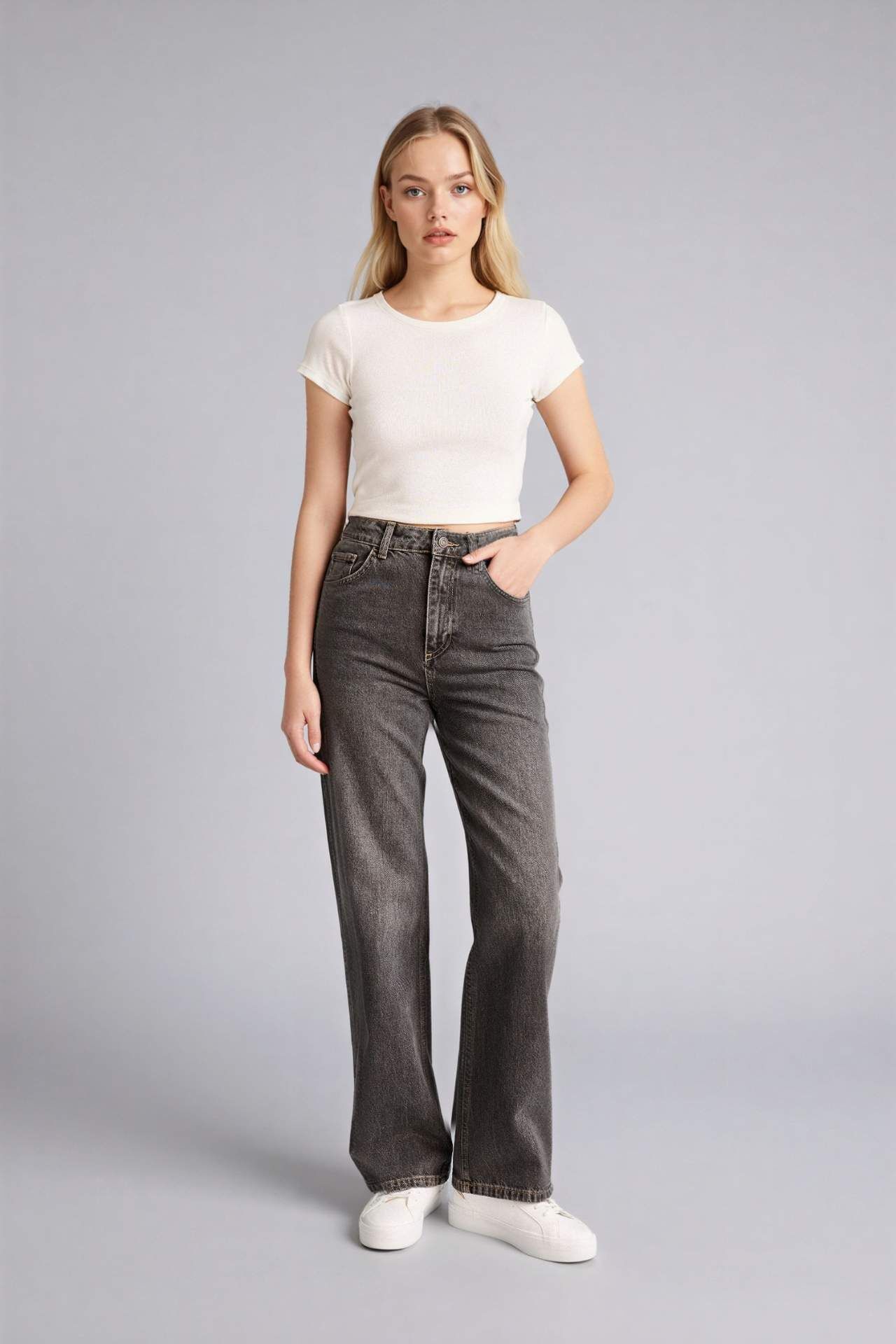 Yüksek bel tasarımı ve 90’lar esintili wide leg kesimiyle 90's Wide Leg Yüksek Bel Jean Pantolon, retro şıklığı modern konforla birleştirir. Günlük ve sokak stilinizde rahat ve stil sahibi bir görünüm sunar. Pamuk 100% Manken Bedeni: Göğüs: 82 Boy: 1,76 Basen: 91 Bel: 62