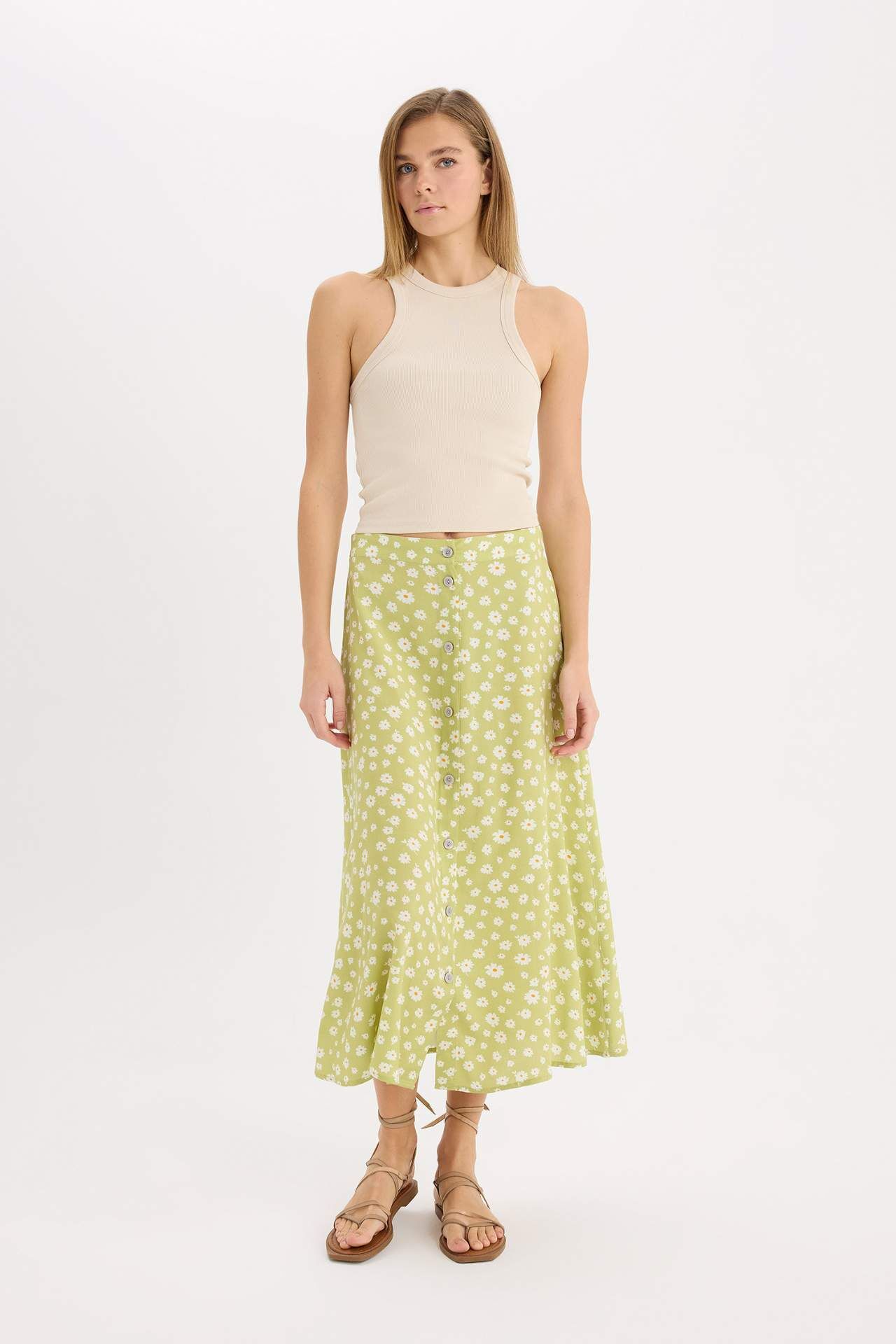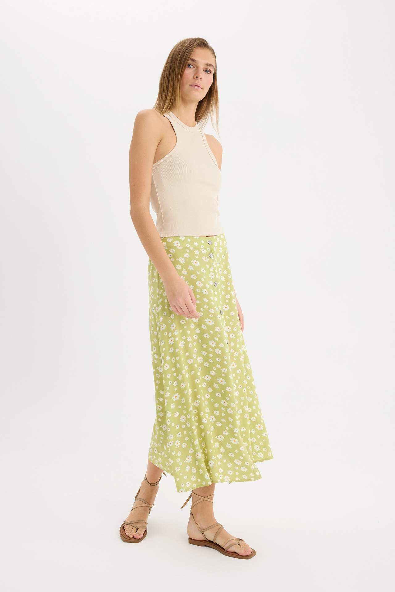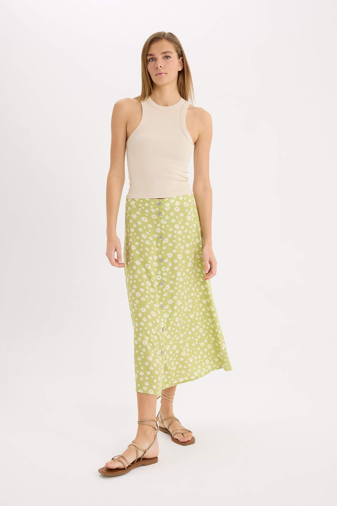 DeFacto A Form Floral Yüksek Bel Maroken Midi Etek