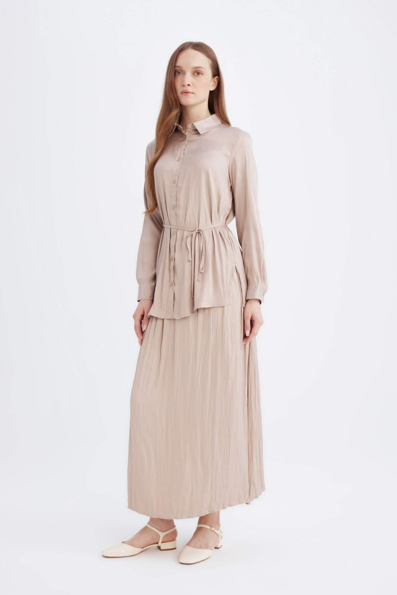 A Kesim Basic Düz Saten Maxi Etek