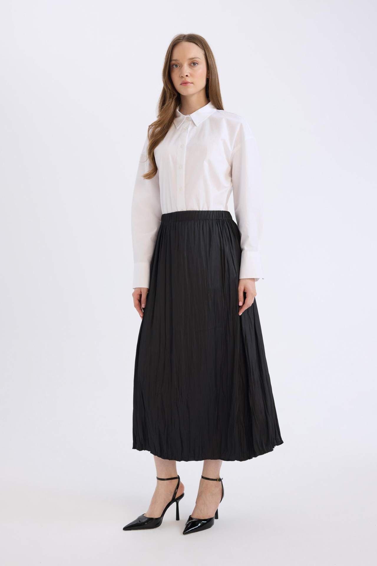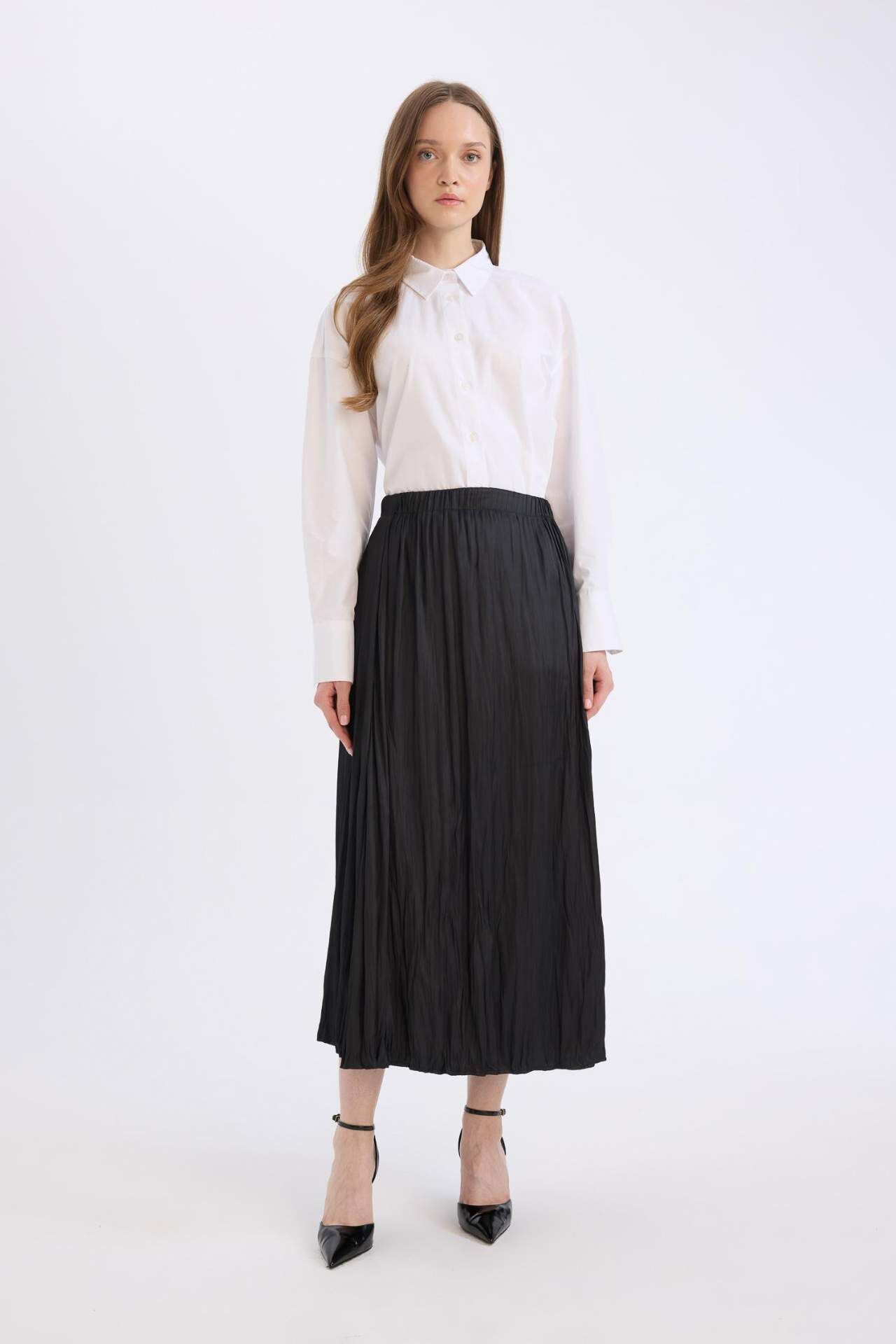 A Kesim Basic Düz Saten Maxi Etek