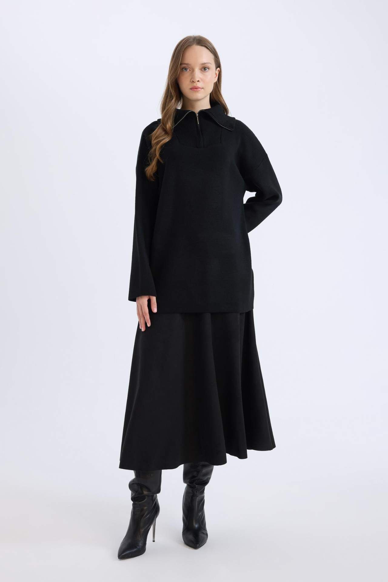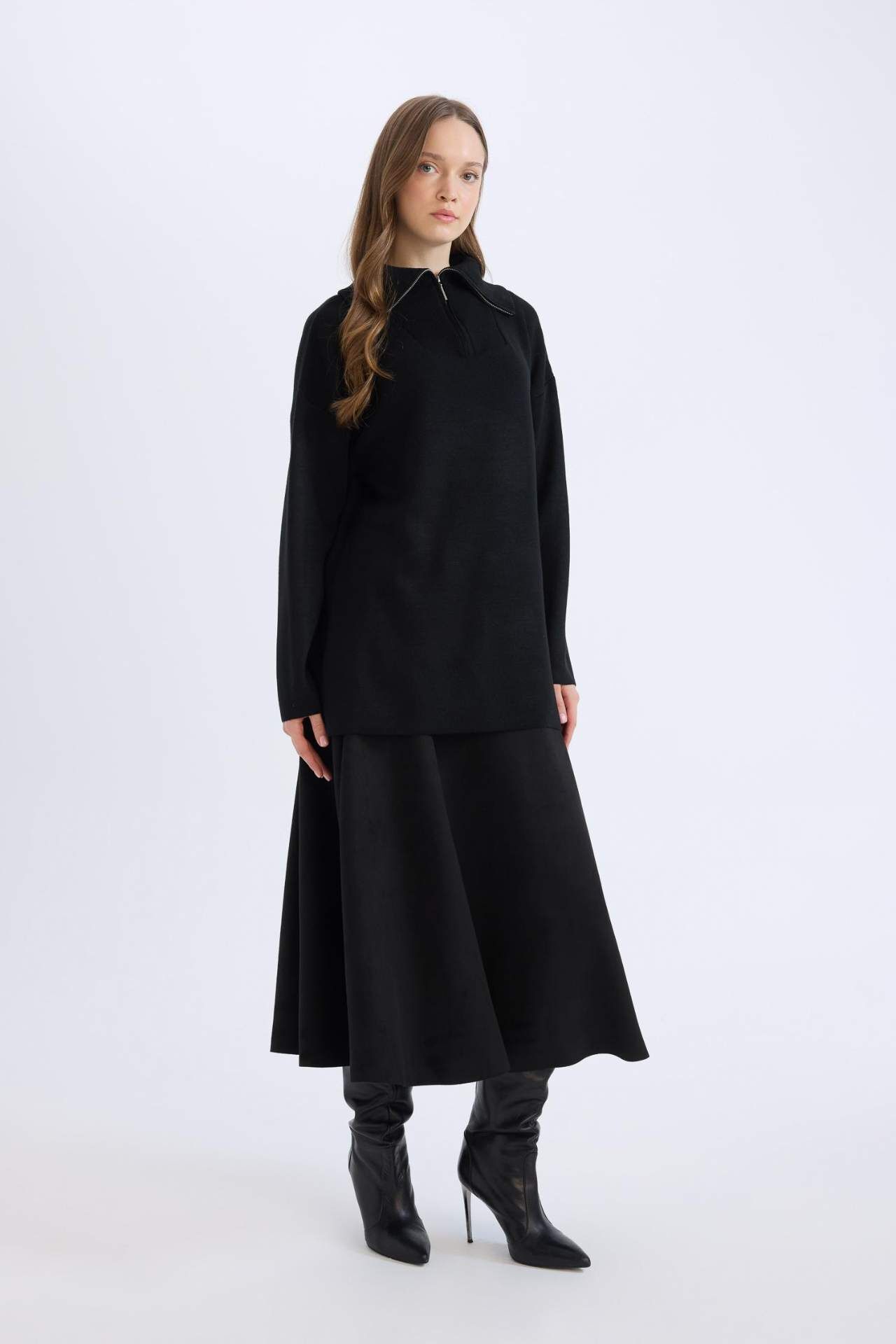 DeFacto A Kesim Basic Düz Süet Midi Etek