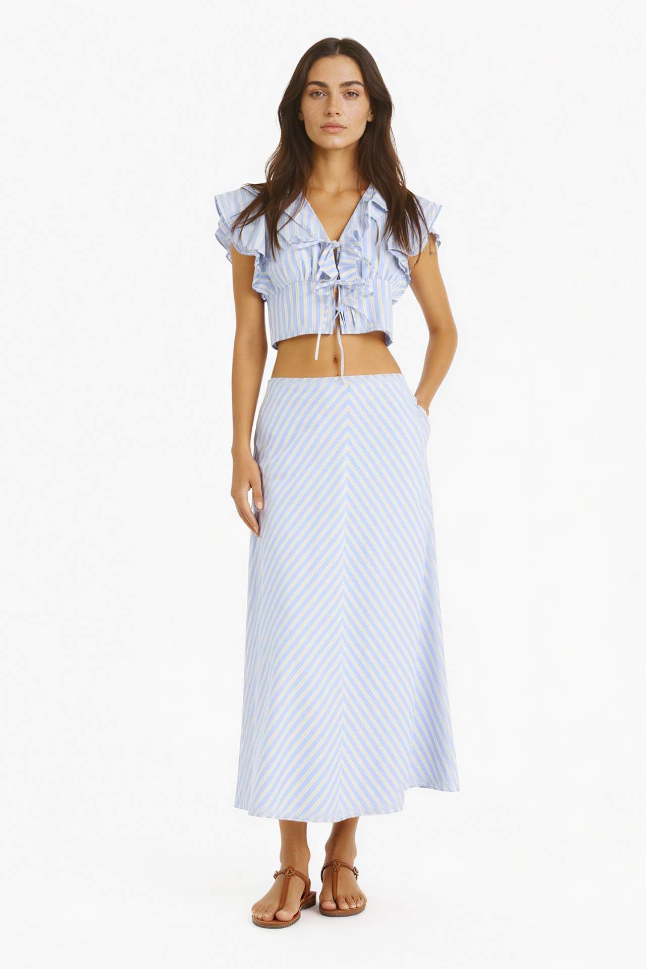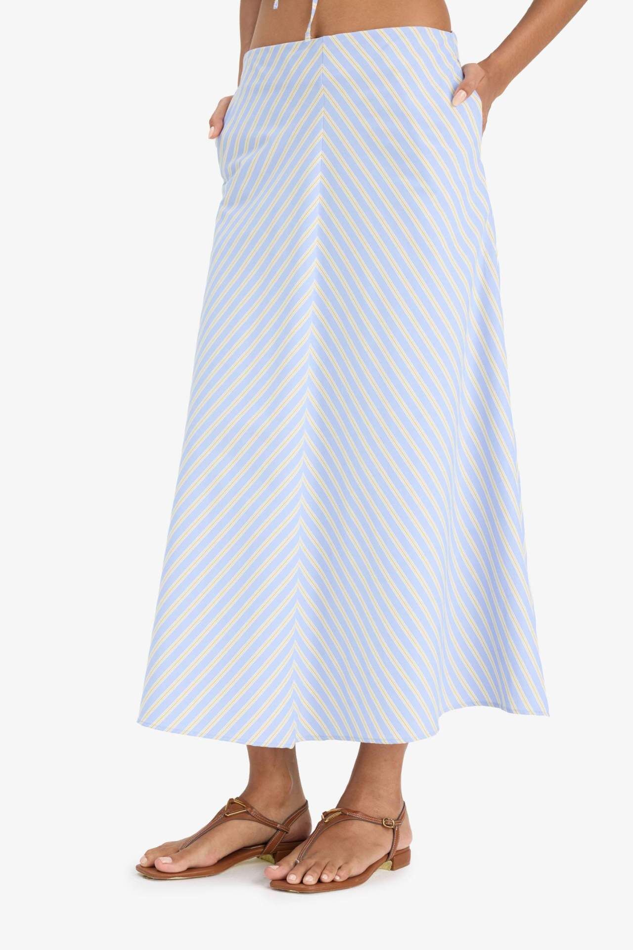DeFacto A Kesim Çizgili Normal Bel Poplin Maxi Etek