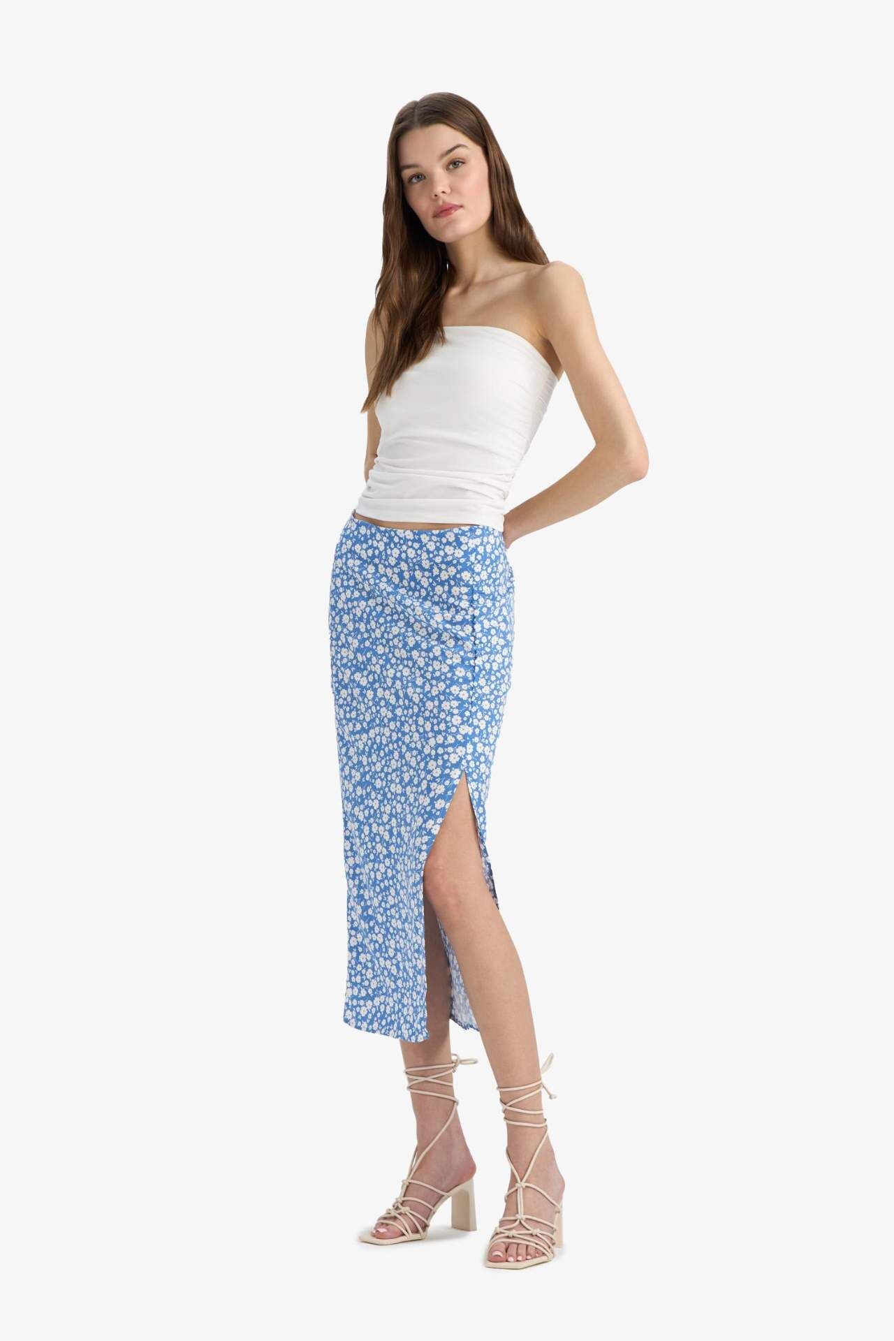 A Kesim Desenli Yüksek Bel Yırtmaçlı Midi Etek F0526AX25SPBE515