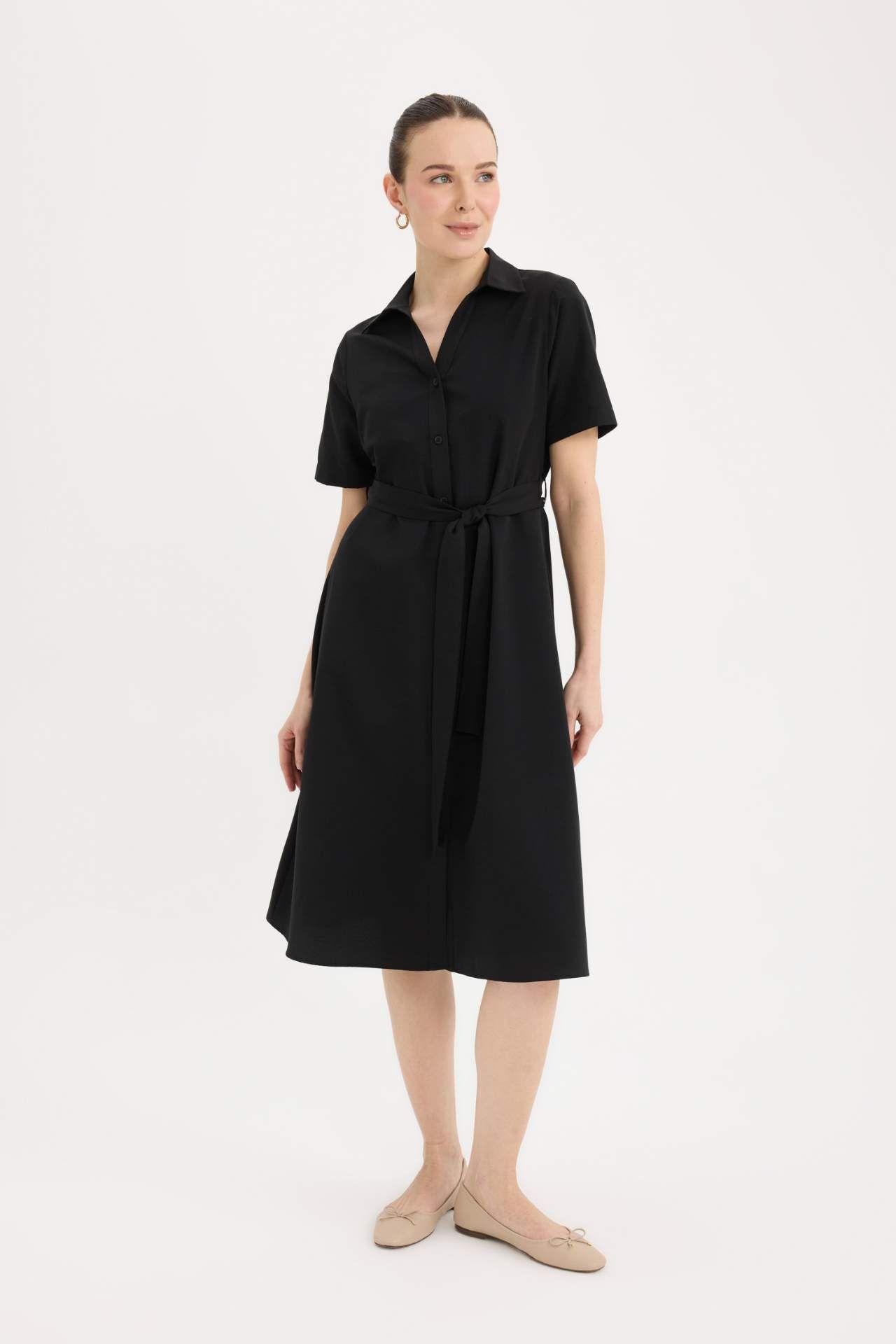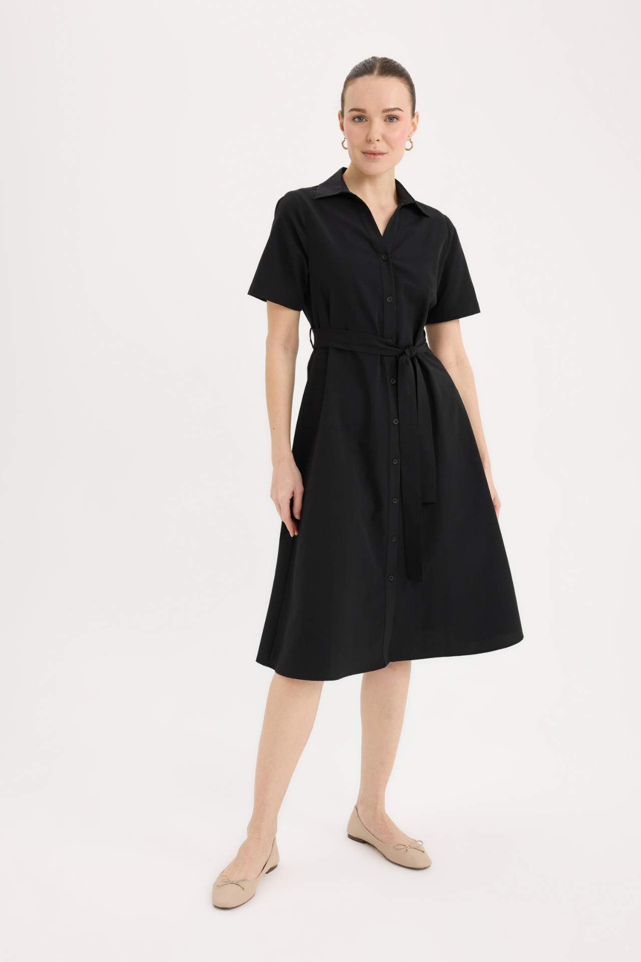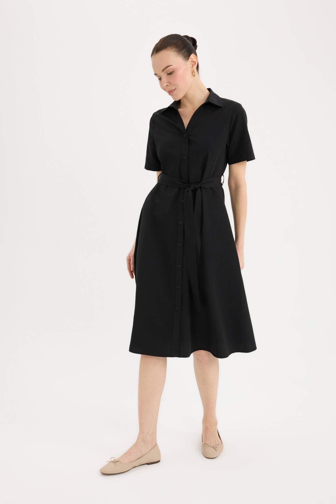 A Kesim Gömlek Yaka Poplin Kısa Kollu Midi Elbise