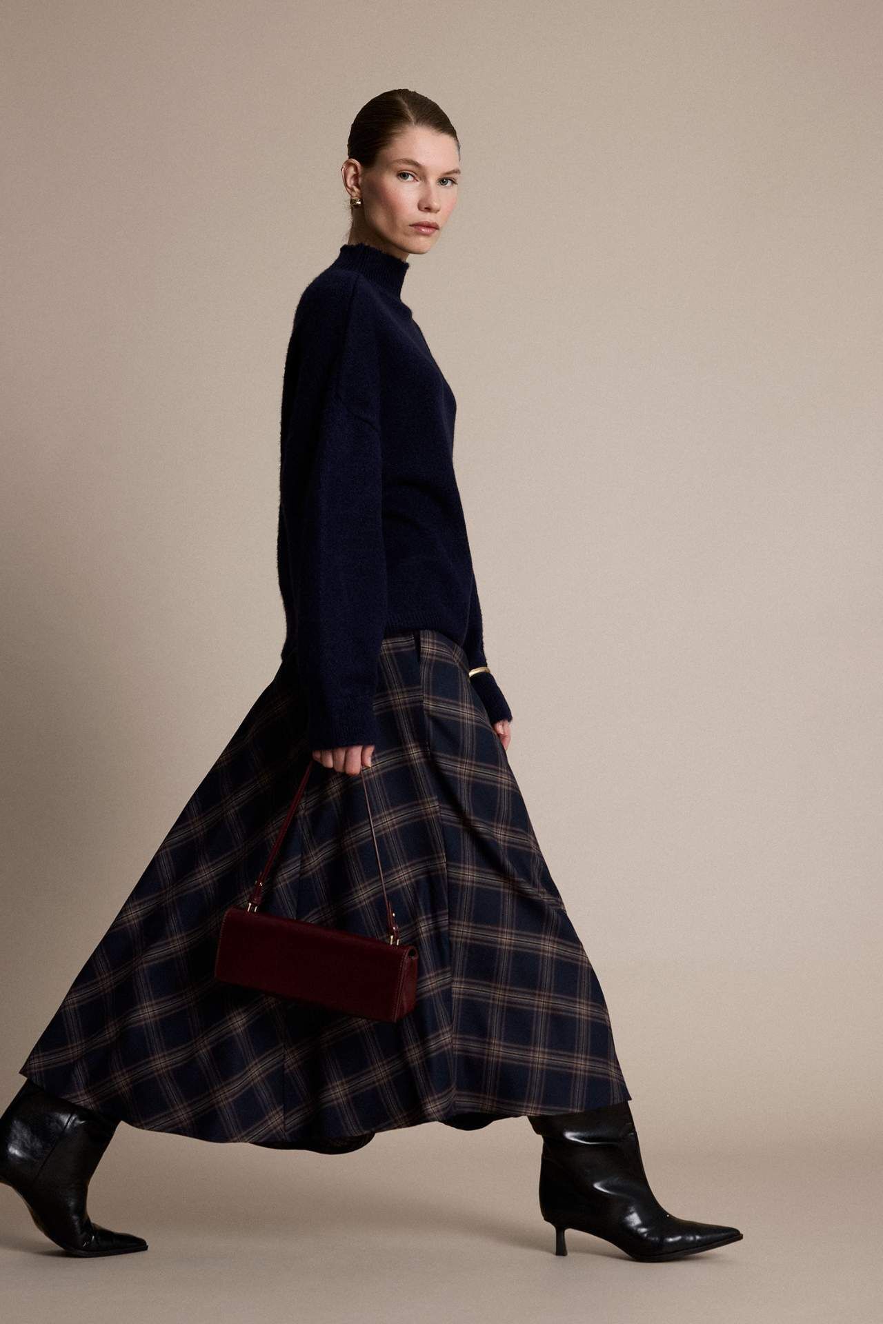 A Kesim Kareli Normal Bel Midi Etek