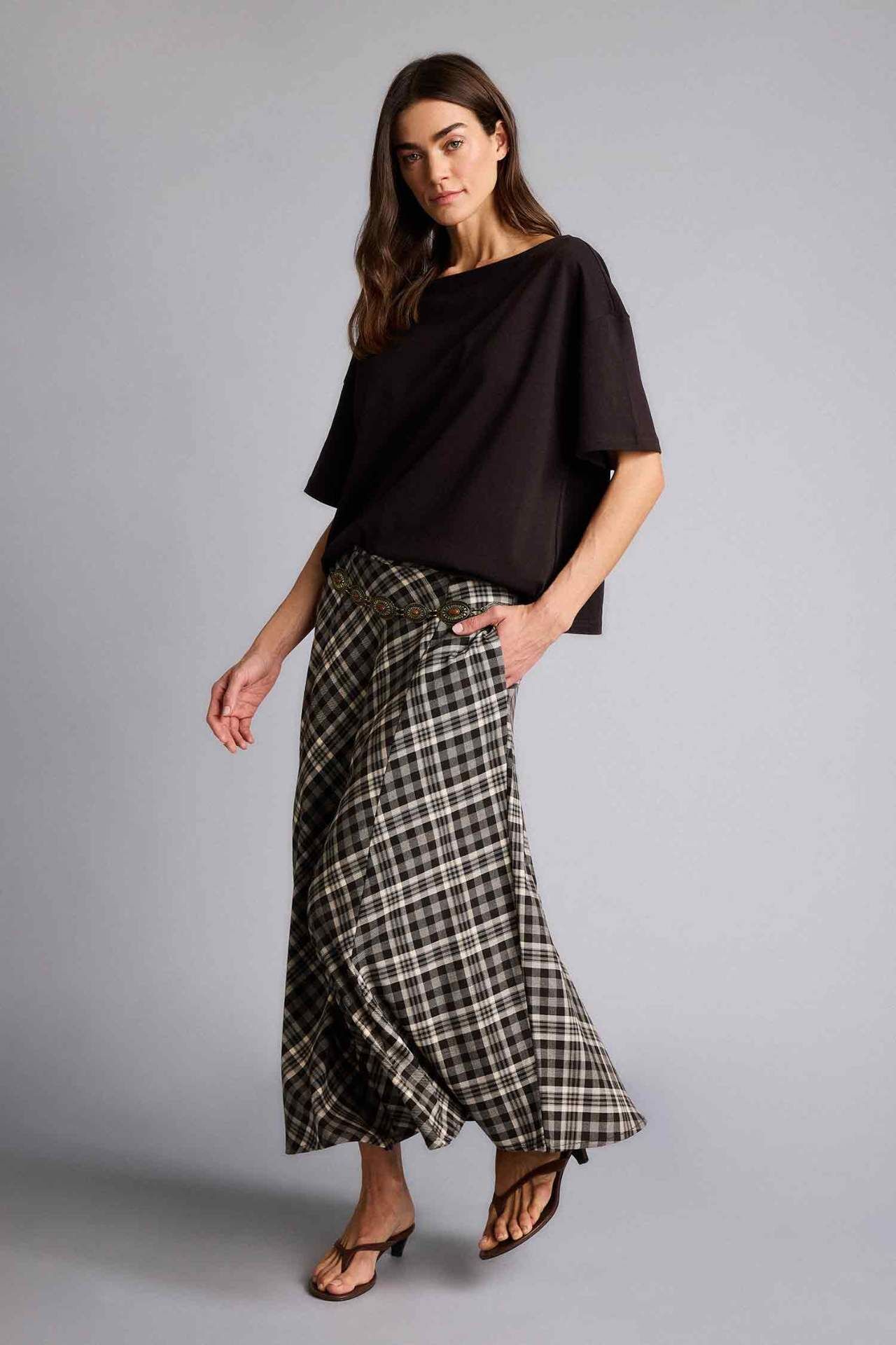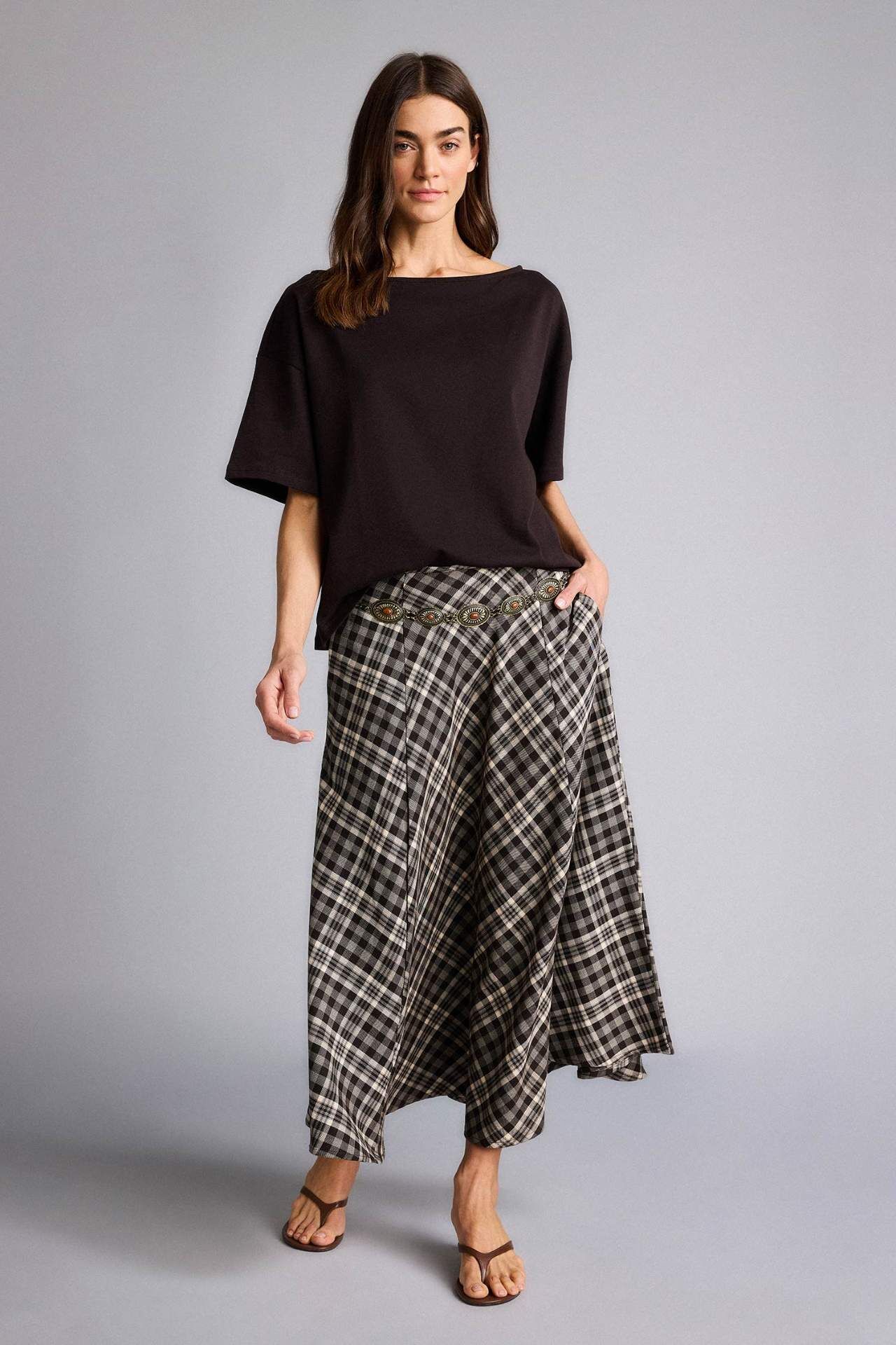 DeFacto A Kesim Kareli Normal Bel Midi Etek