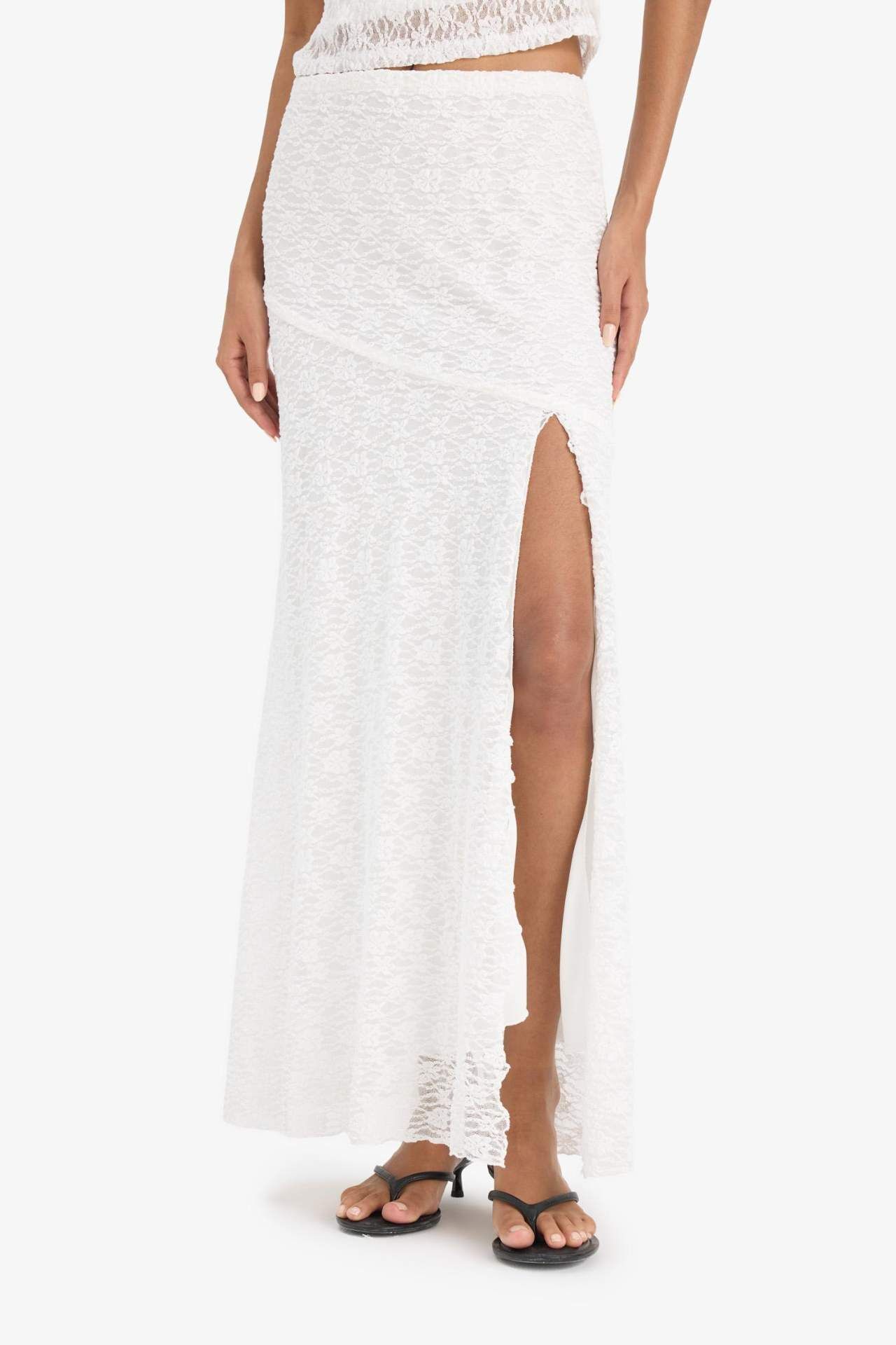 DeFacto A Kesim Normal Bel Yırtmaçlı Dantel Midi Etek