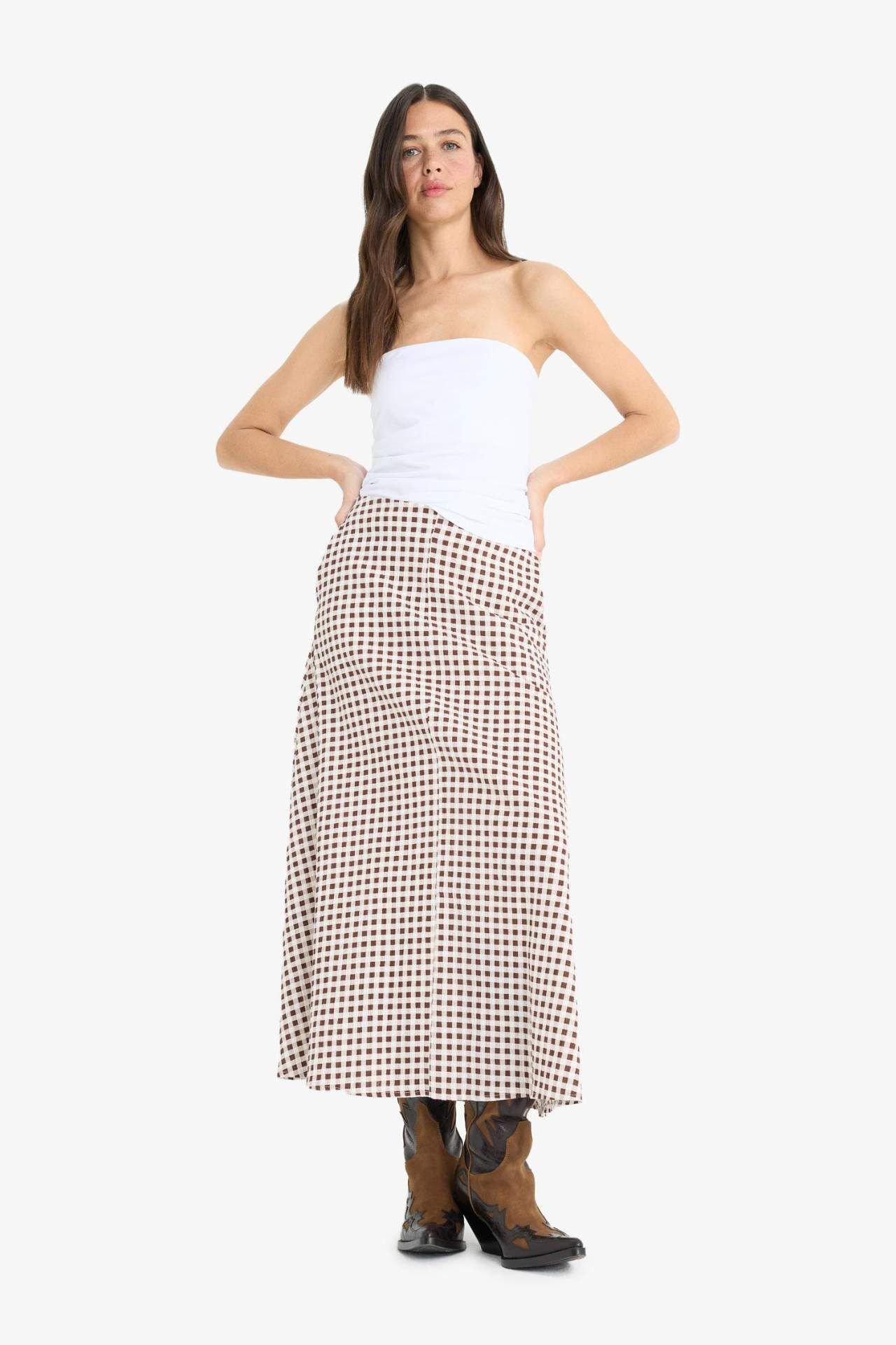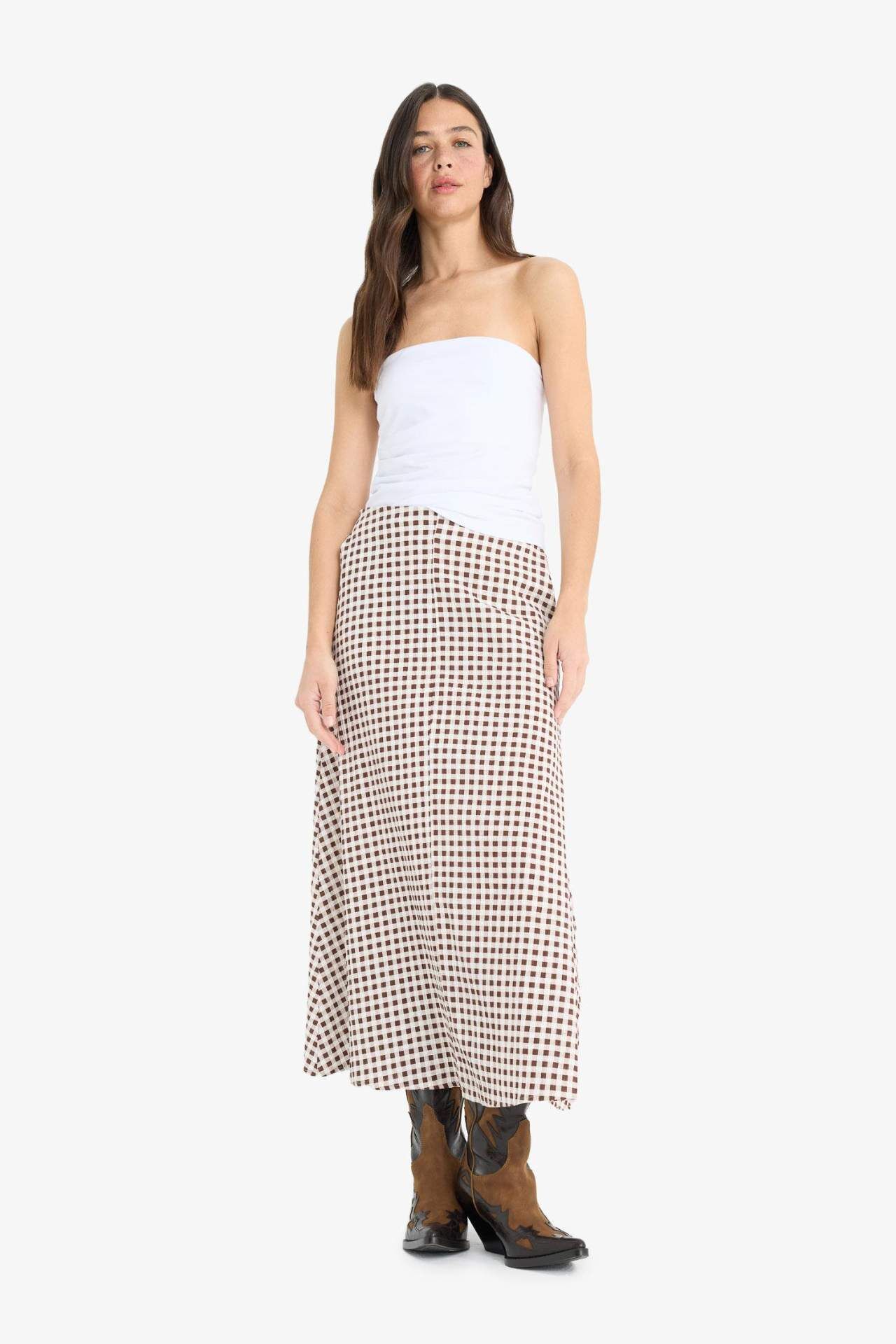 A Kesim Pötikareli Normal Bel Gofre Dokulu Maxi Etek