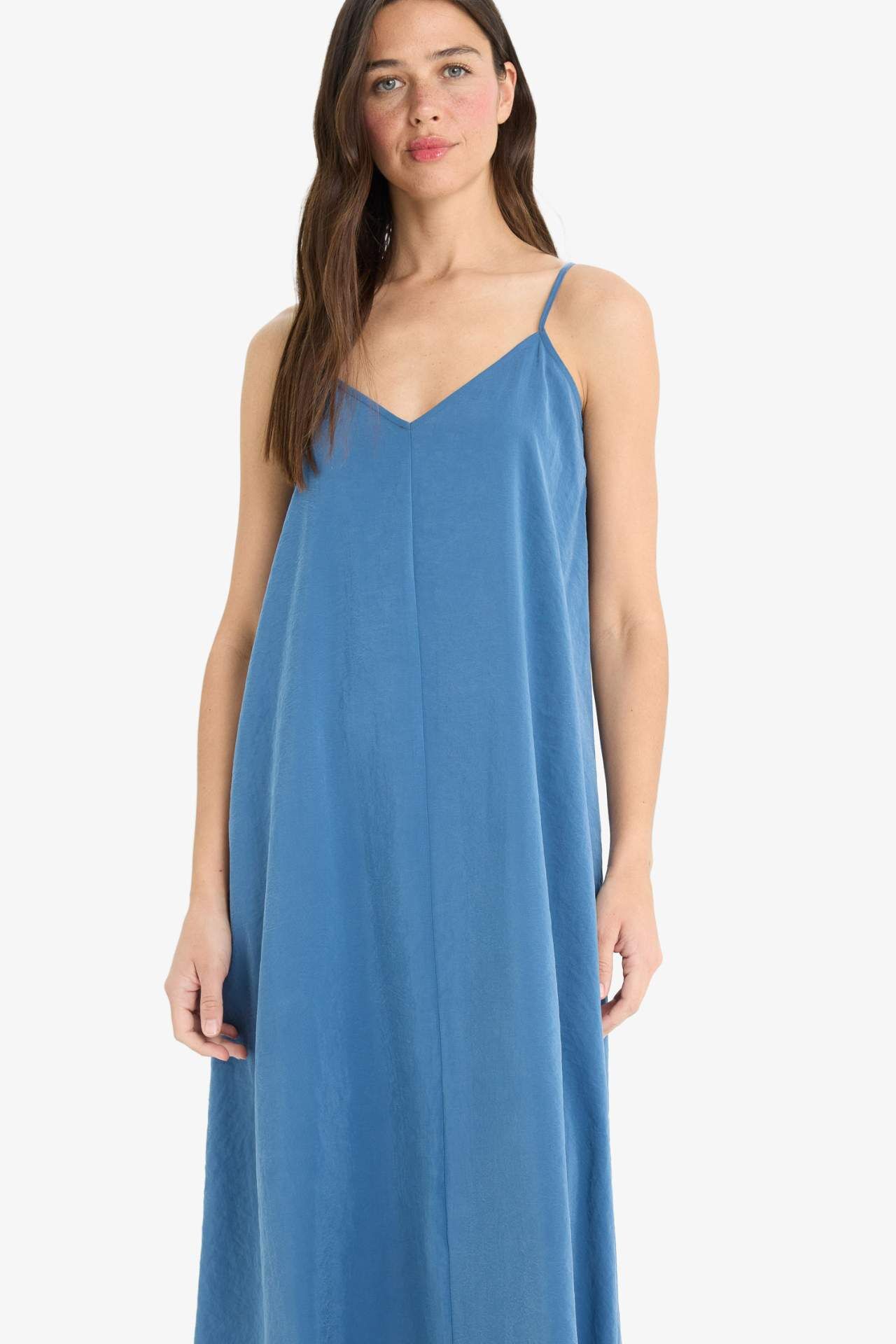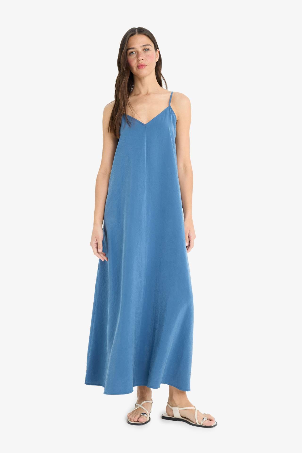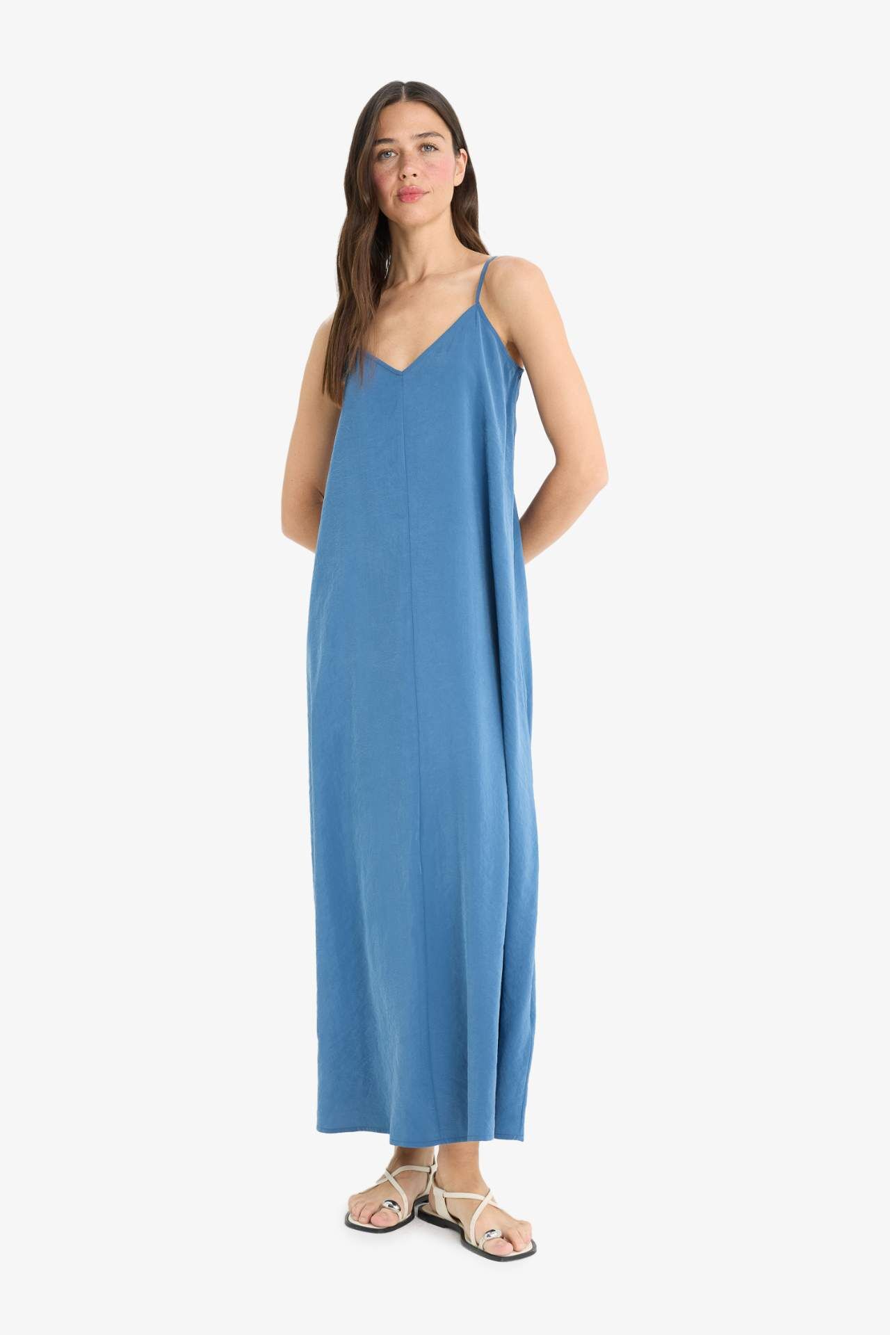 A Kesim V Yaka Modal Kolsuz Maxi Elbise