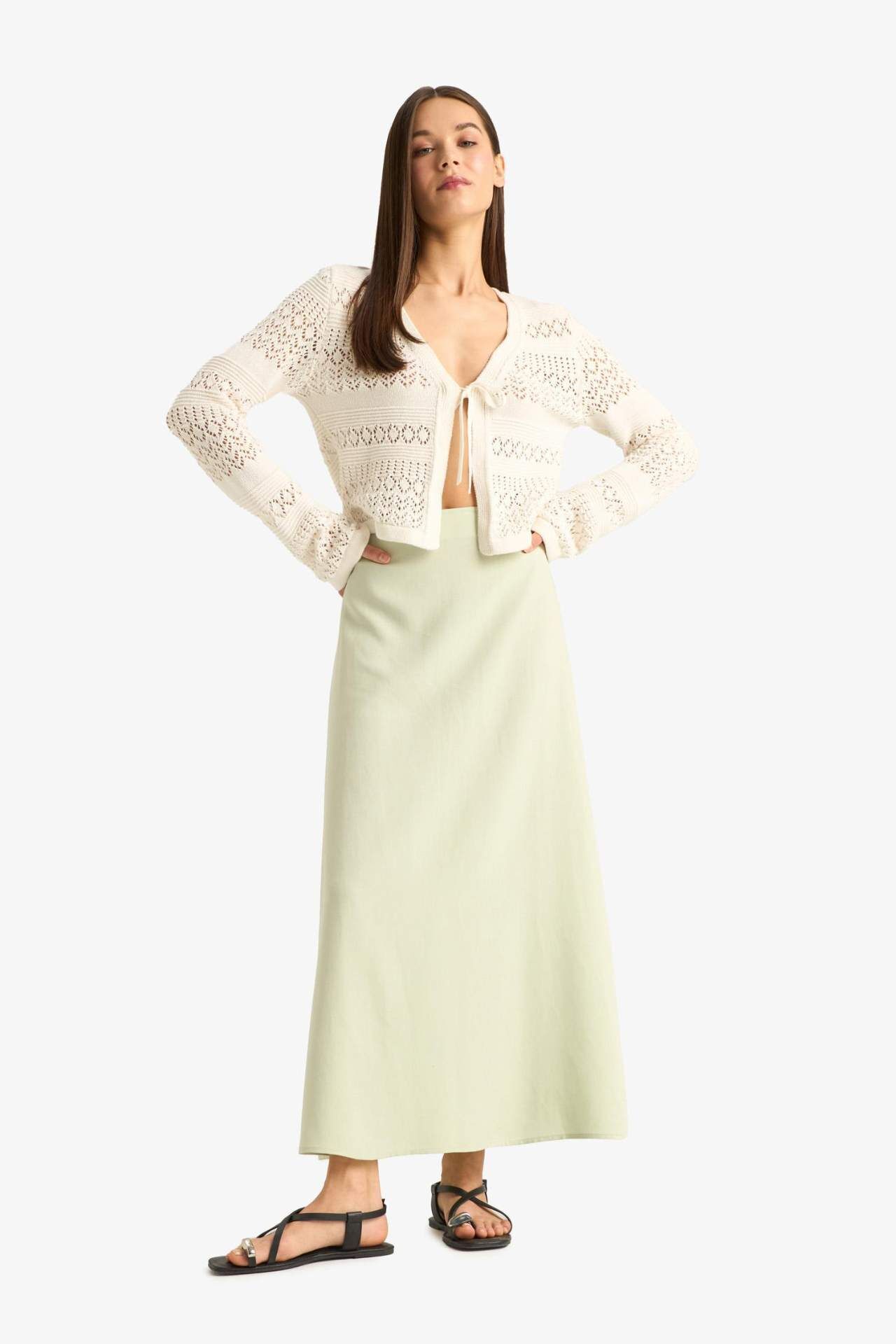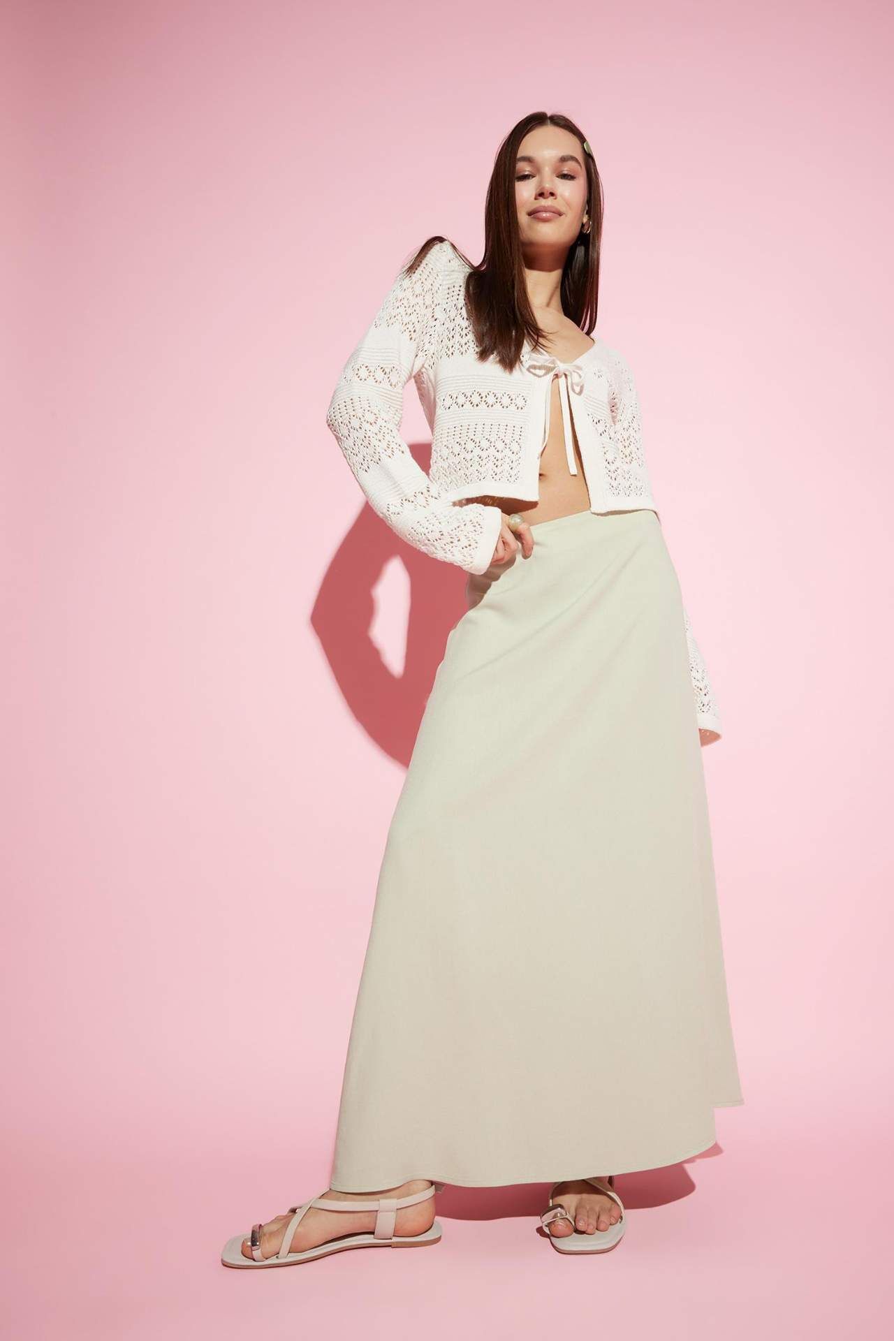 A Kesim Yüksek Bel Keten Karışımlı Maxi Etek