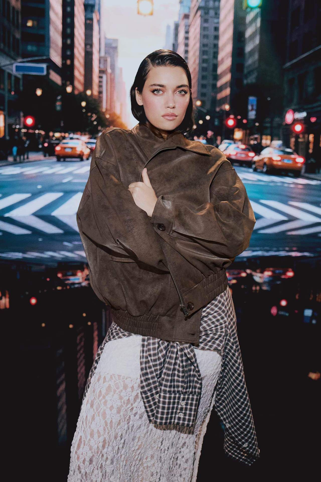 Afra x DeFacto Dad Fit Polo Yaka Fermuarlı Süet Ceket
