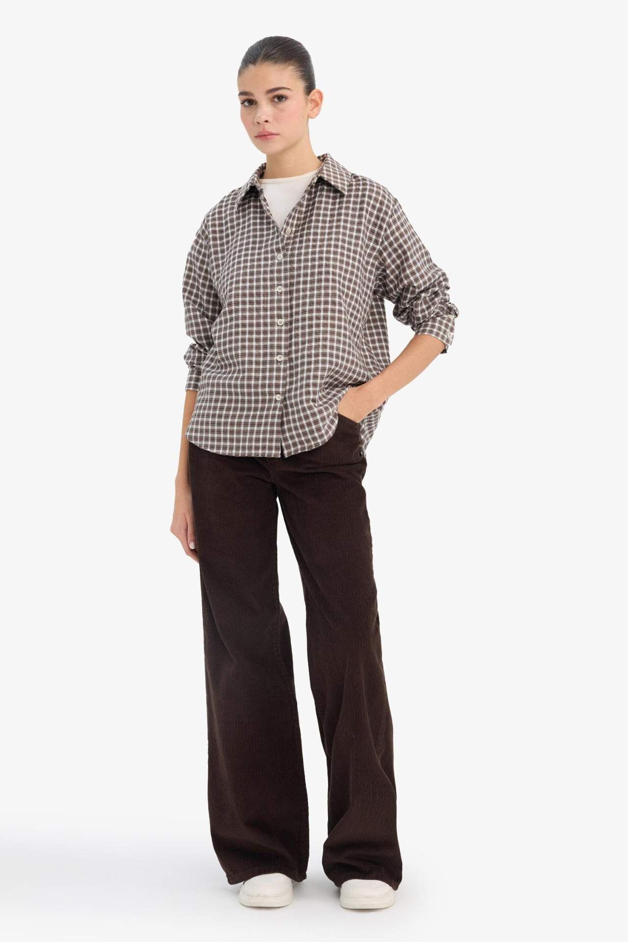 Afra x DeFacto Oversize Geniş Kalıp Pötikareli Poplin Uzun Kollu Gömlek