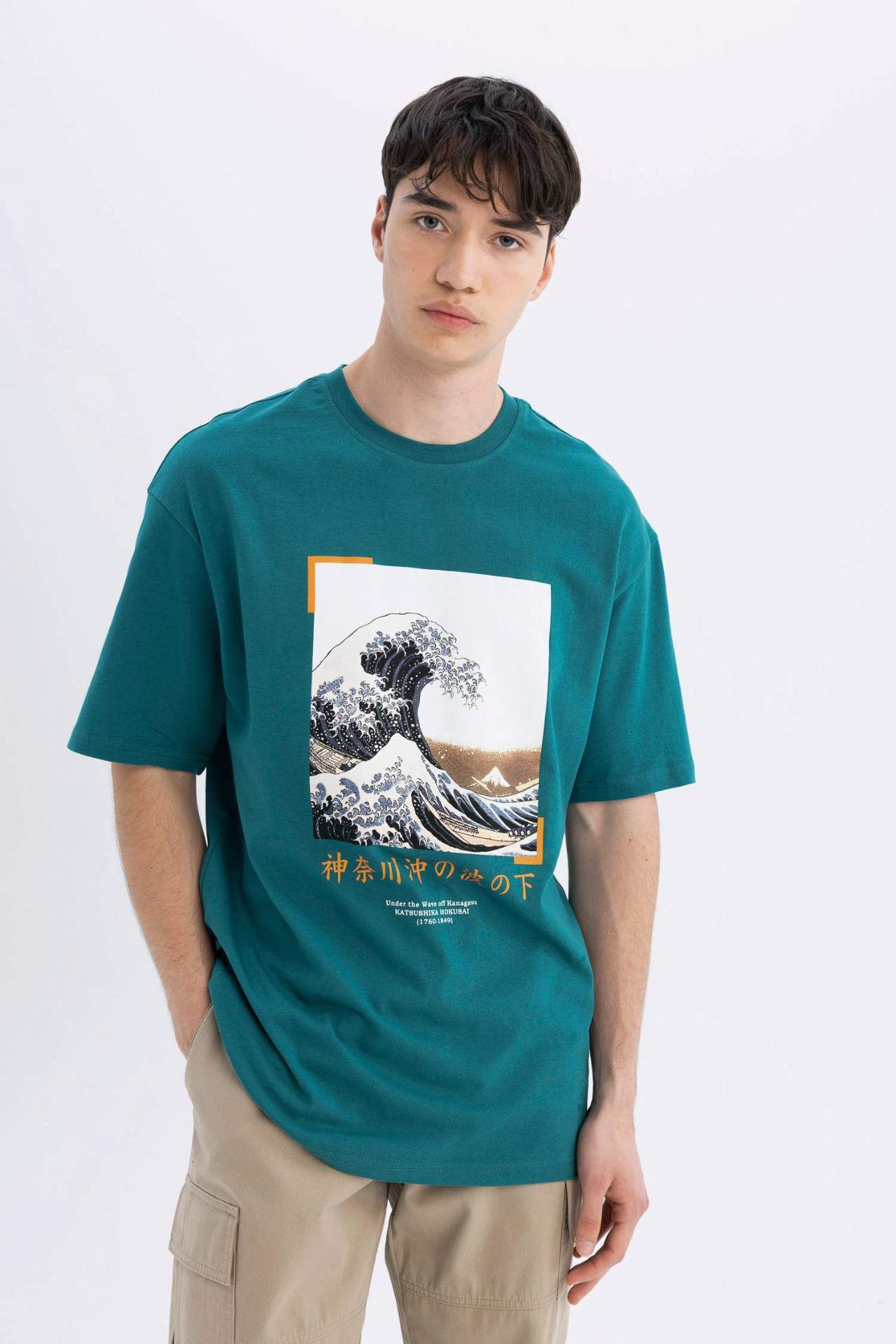 DeFacto DeFactoFit Art Hokusai Comfort Fit Bisiklet Yaka Baskılı Kısa Kollu Tişört