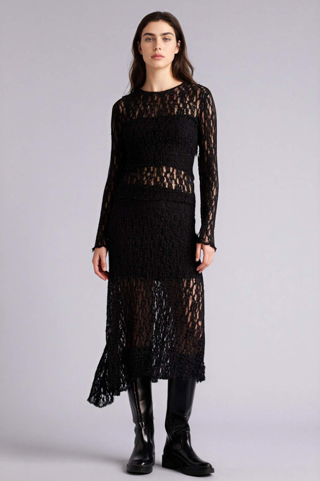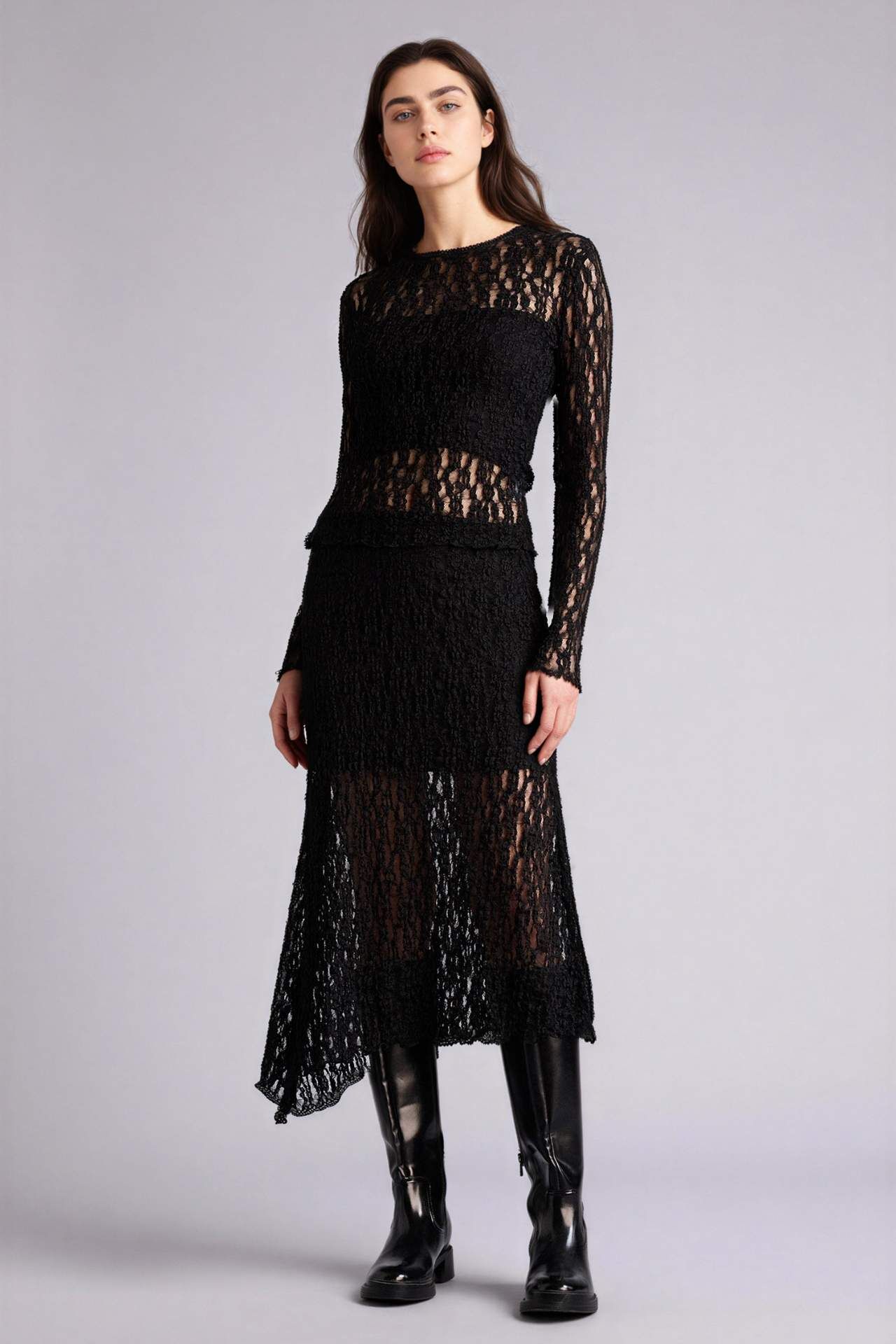 Asimetrik penye astar dantel midi etek, zarif dantel detayları ve modern kesimiyle feminen bir şıklık sunar. Hafif ve esnek yapısı, hem rahat hem de şık kombinler oluşturmanıza yardımcı olur. Poliester 100%,Elastan 1%,Poliester 99% Manken Bedeni: Göğüs: 87 Boy: 1,79 Basen: 94 Bel: 64